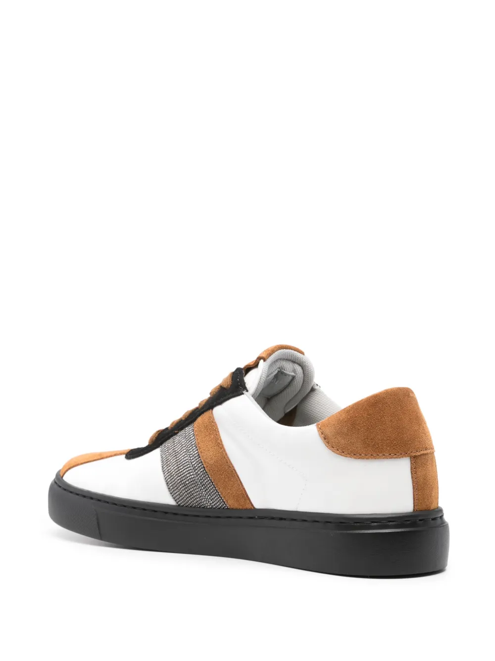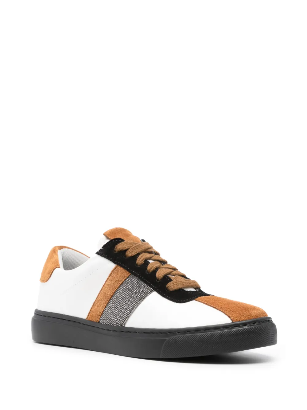 Черный/белый, бежево-коричневый, кожа, замшевые вставки, декор из бисера, закругленный носок, шнуровка спереди, стелька с логотипом и плоская резиновая подошва.