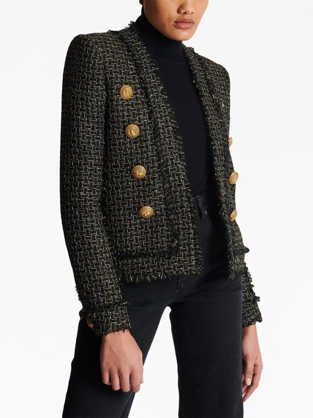 Двубортная твидовая куртка BALMAIN, черный 277 547₽