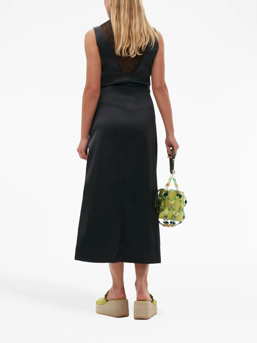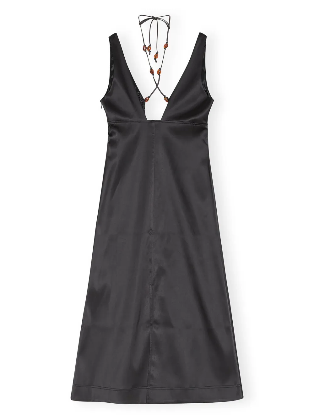 Подробнее о товаре: Черный, смесовый переработанный полиэстер, завязки вокруг шеи, глубокий V-образный вырез, V-образный вырез сзади, юбка А-образного силуэта, длина до середины голени и без рукавов. Этот товар как минимум на 50% состоит из переработанных или повторно использованных материалов. Узнать больше о том, какие товары получают отметку «Ответственный выбор», можно из материала «Как мы оцениваем экологичность и этичность».