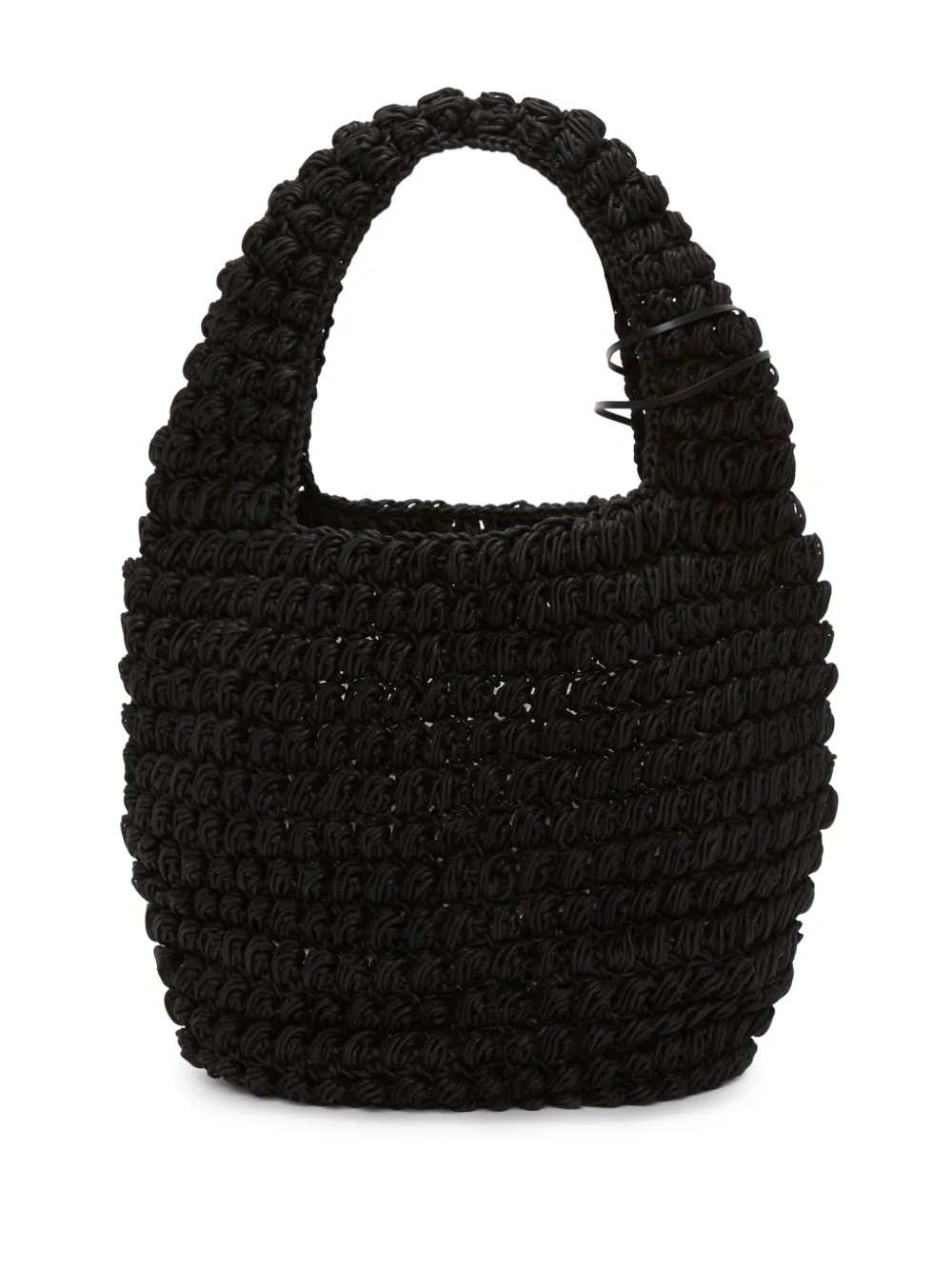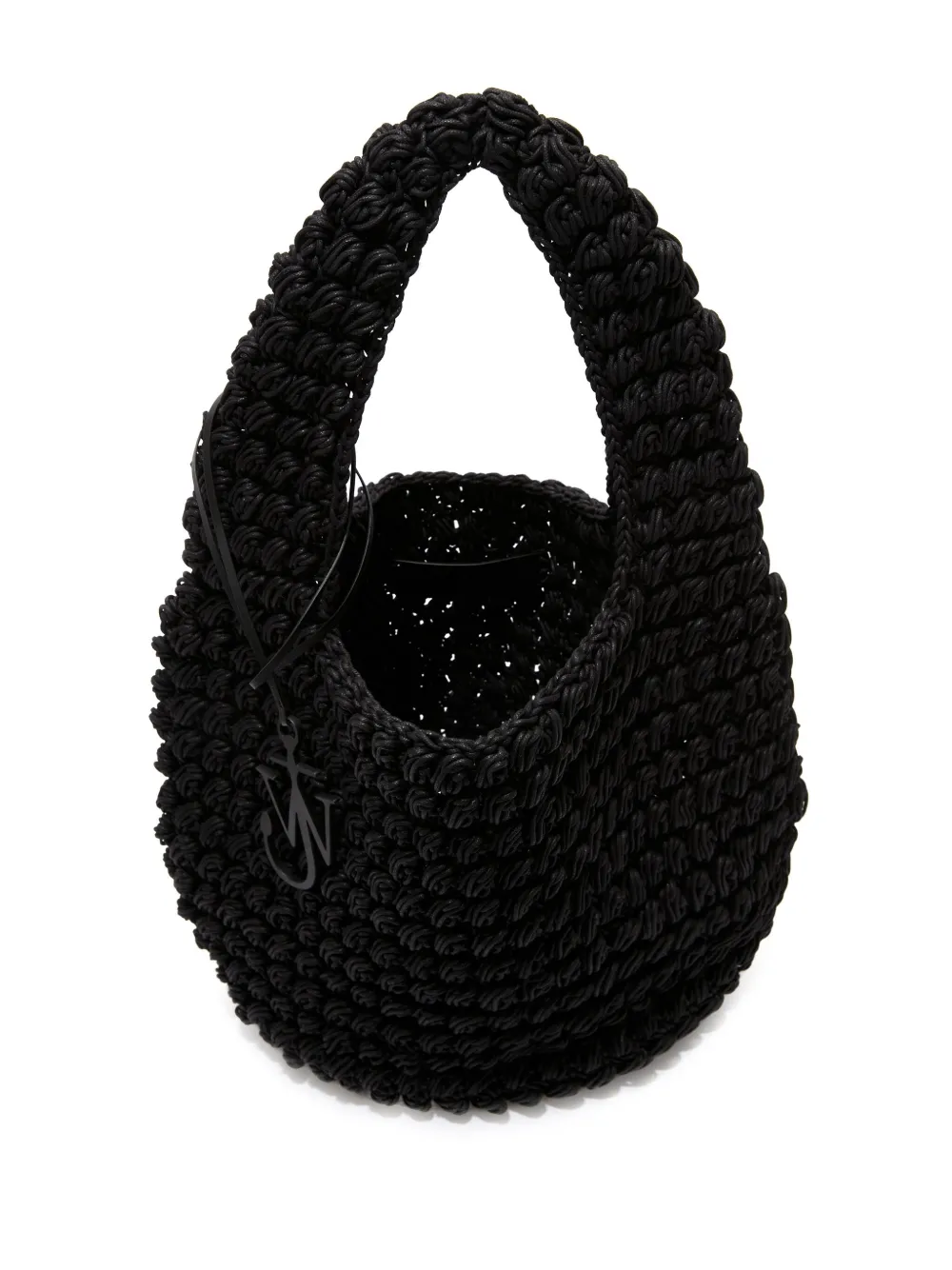 Черный, хлопок, переплетенный дизайн, вязаный узор «попкорн», логотип с инициалами JW в виде якоря, верхняя ручка, дизайн с открытым верхом, нашивка с логотипом внутри и основное отделение.