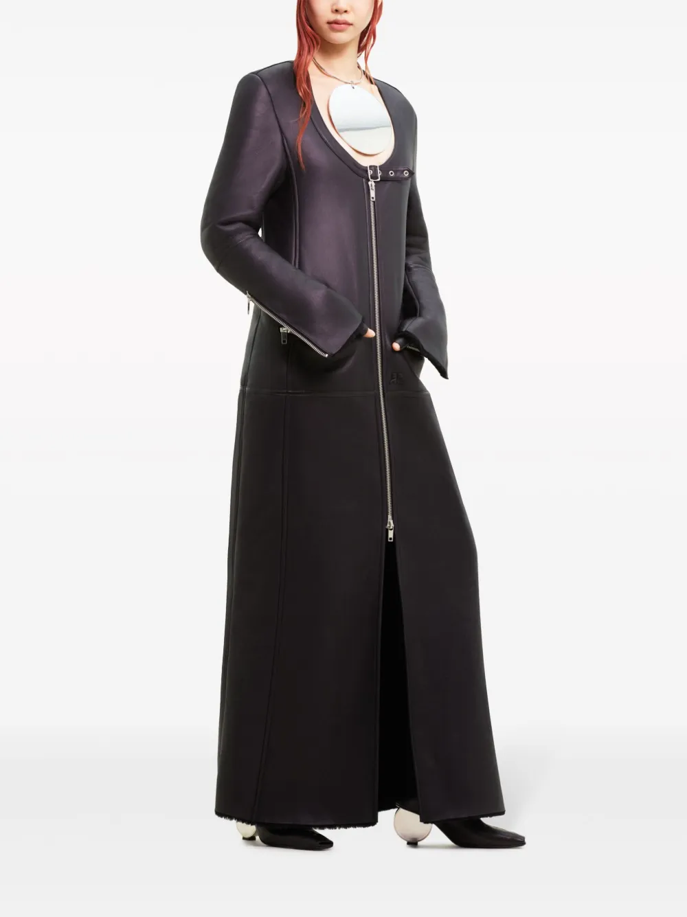 Кожаное пальто со вставками Courrèges, черный 257 394₽