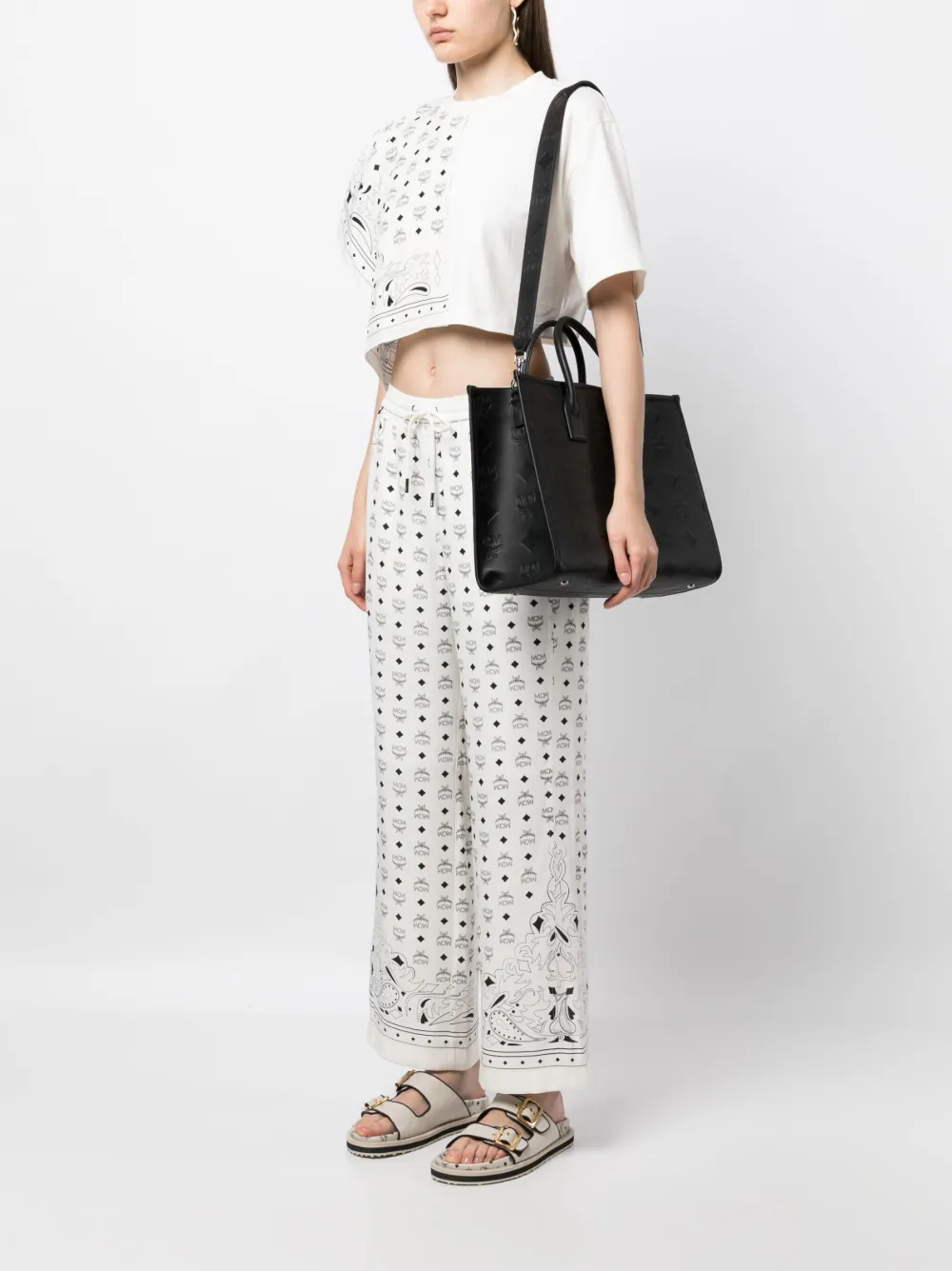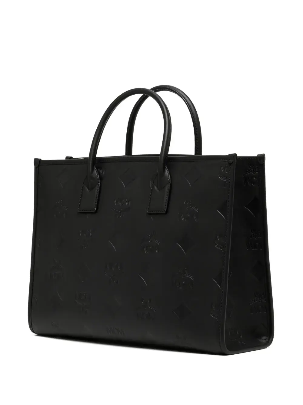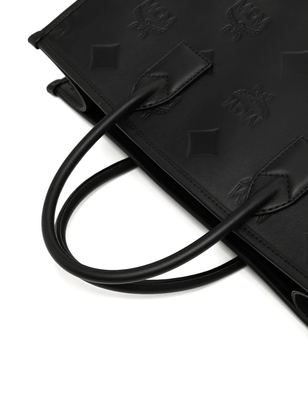 Черный, телячья кожа, кожаная отделка, сплошной принт с логотипом, внутренний карман на молнии, потайная застежка на кнопках, две верхние ручки, съемный регулируемый ремень на плечо и основное отделение.