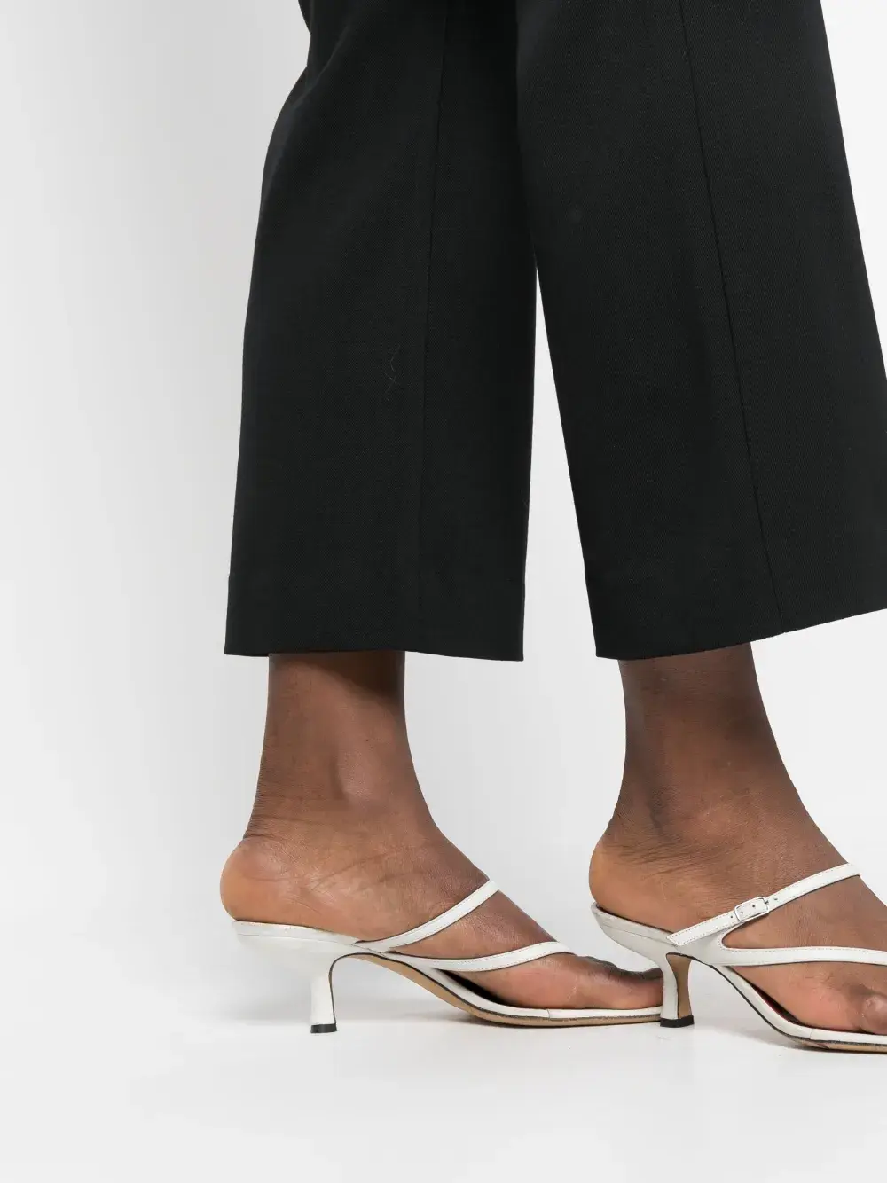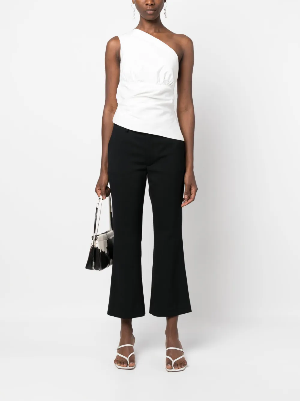 Черный, потайная застежка на молнии и пуговицах, два вшитых кармана по бокам, прорезной карман сзади, петли для ремня, расклешенный крой, завышенная талия, укороченная длина и прямой подол. Узнать больше о том, какие товары получают отметку «Ответственный выбор», можно из материала «Как мы оцениваем экологичность и этичность».