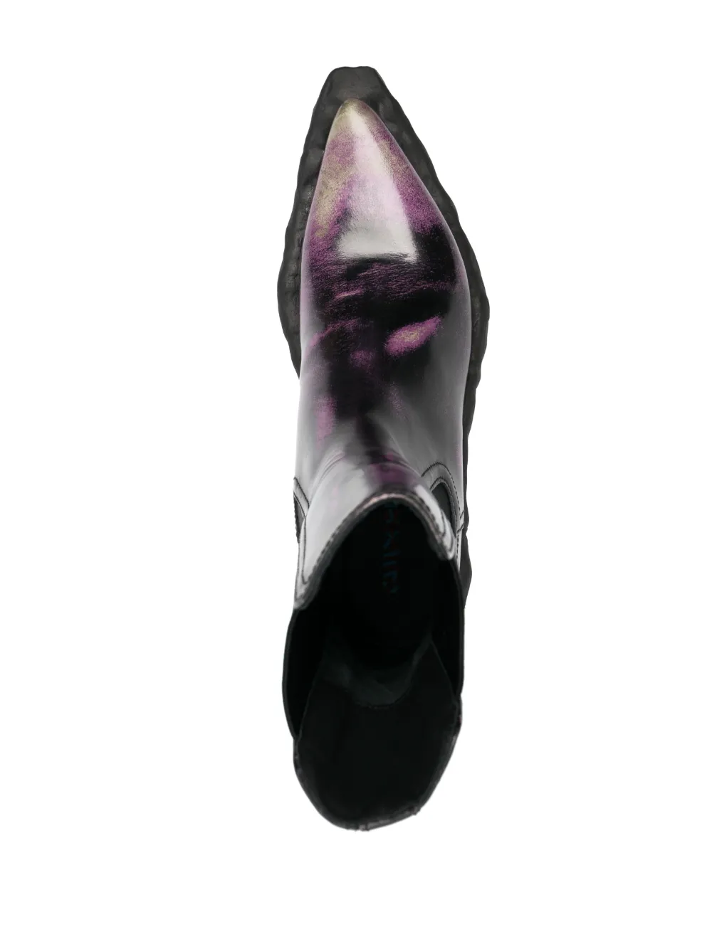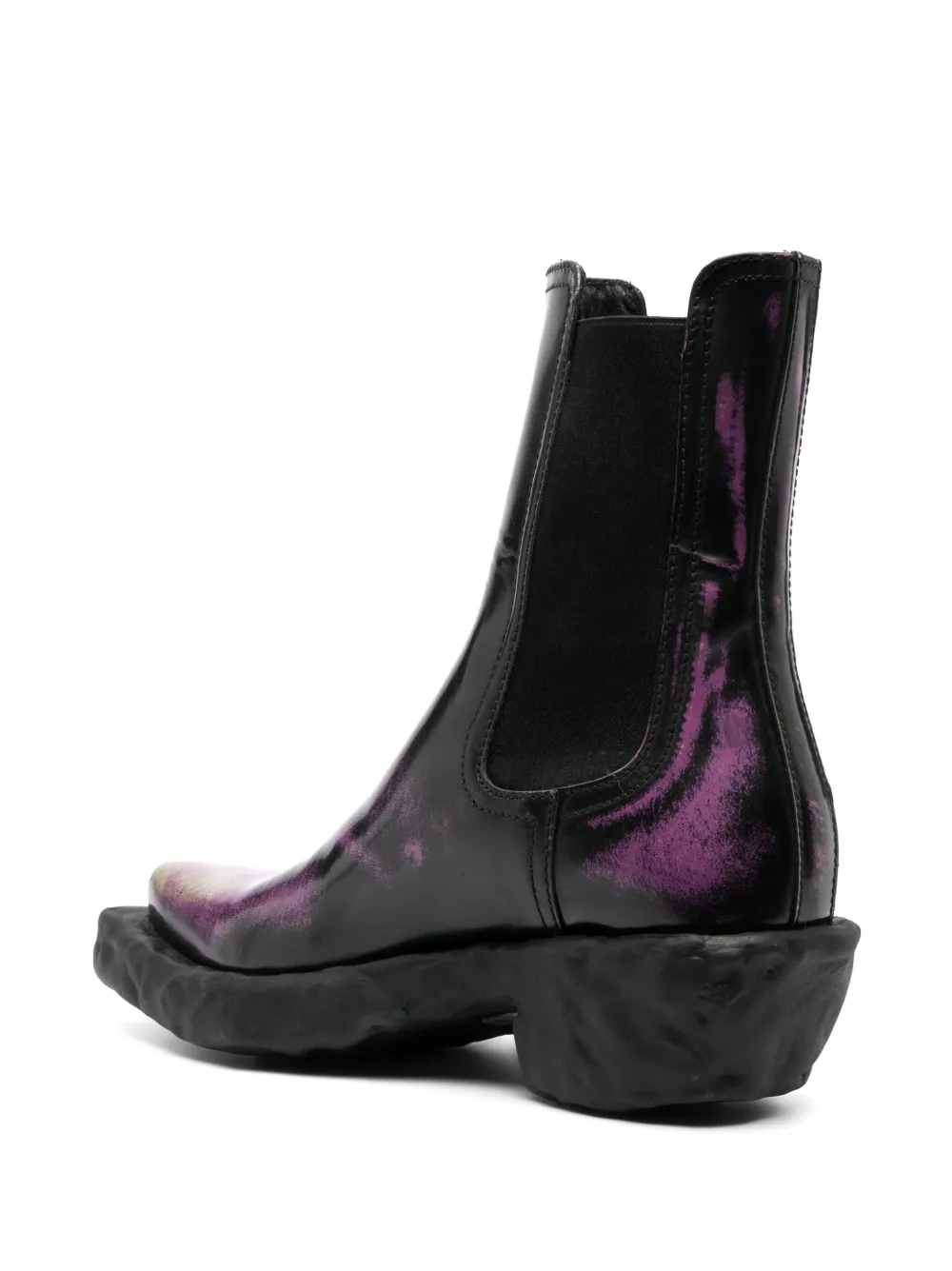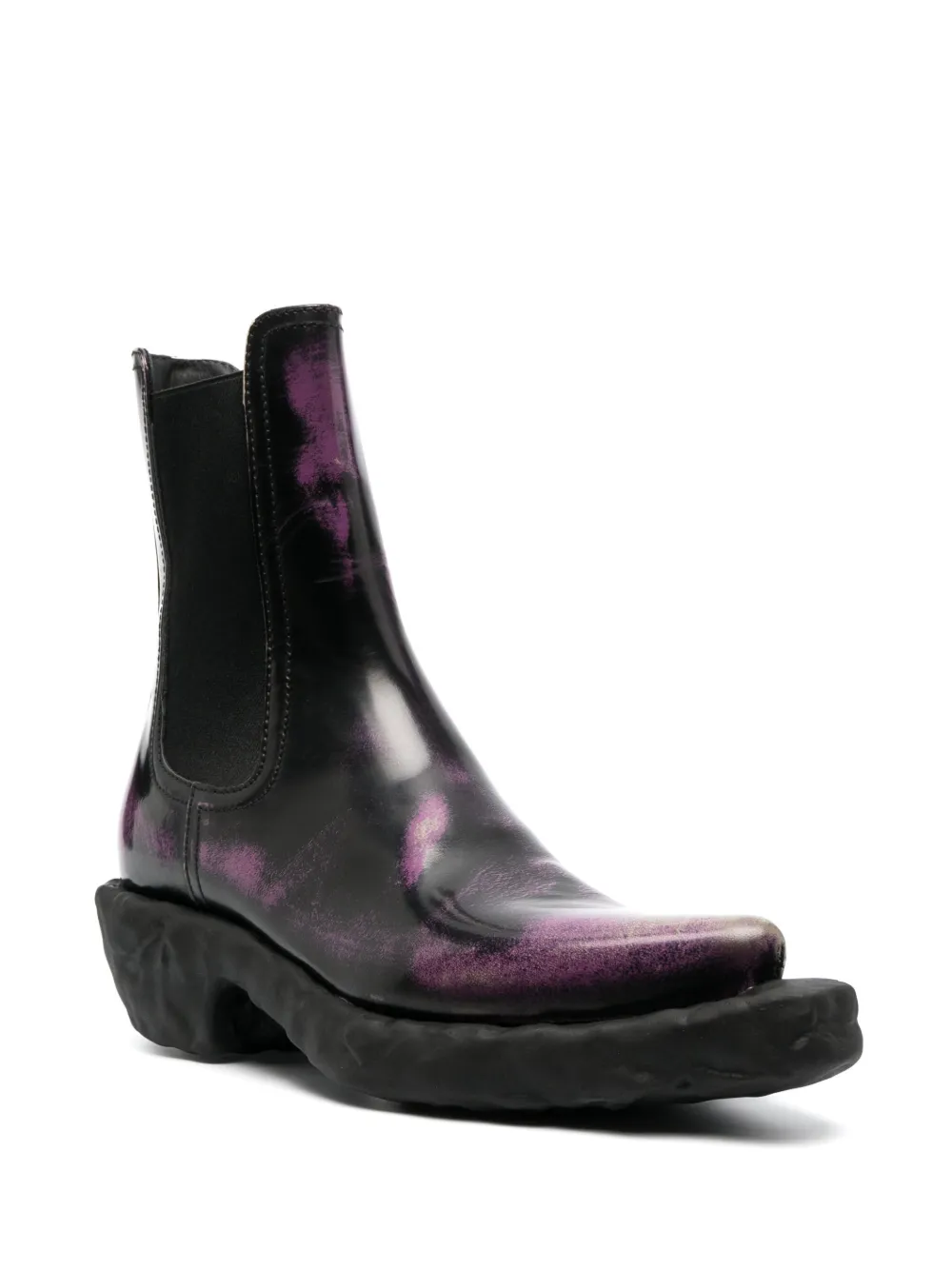 Подробнее о товаре: Фиолетовый, черный, телячья кожа, узор с эффектом разбрызганной краски, заостренный носок, эластичные боковые вставки, модель без застежки, стелька с логотипом и массивная резиновая подошва. Кожа в составе этого товара сделана на фабрике, сертифицированной организациями Leather Working Group (LWG) или ICEC. Это гарантирует, что производитель минимизировал негативное влияние материала на окружающую среду. Узнать больше о том, какие товары получают отметку «Ответственный выбор», можно из материала «Как мы оцениваем экологичность и этичность».
