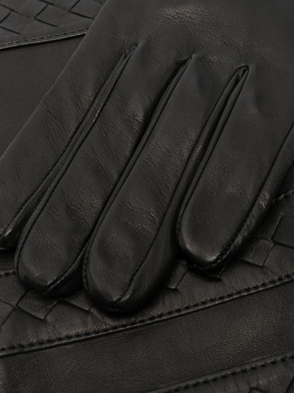 Черный, телячья кожа, вставки, ромбовый узор, кольцо на всю фалангу, длина до локтя и модель без застежки.