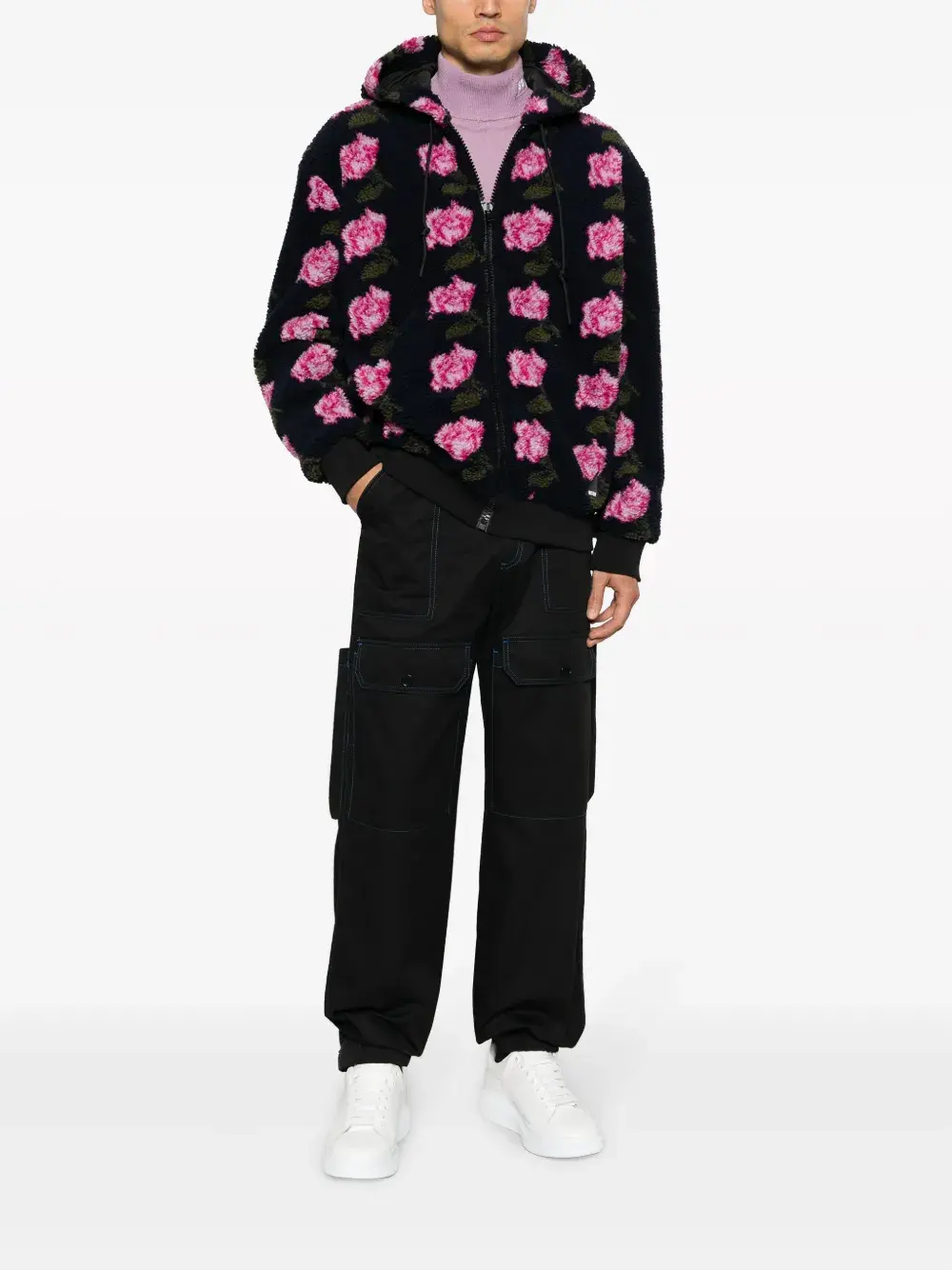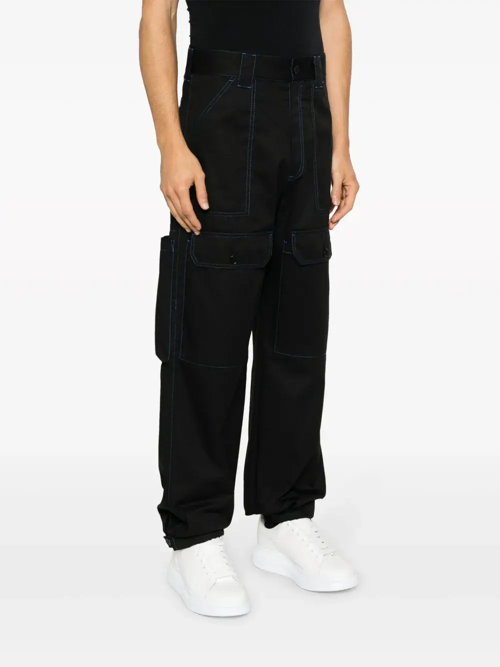 Нашивка с логотипом спереди, нашивка с логотипом сбоку, прямой крой, средняя посадка, петли для ремня, застежка на молнии и пуговице спереди, два вшитых кармана по бокам, два кармана карго спереди, два накладных кармана по бокам, два кармана с листочкой сзади и эластичные манжеты.