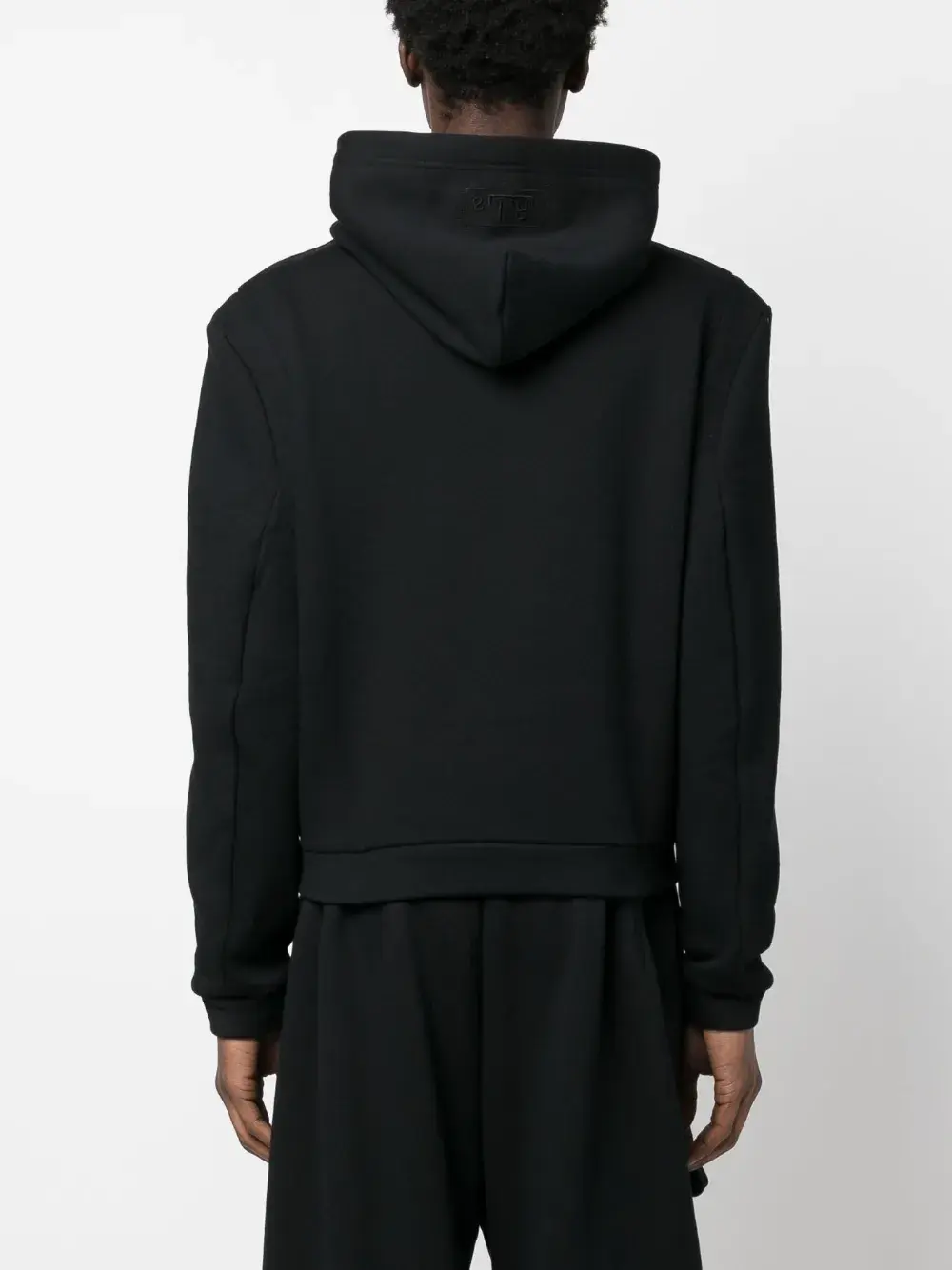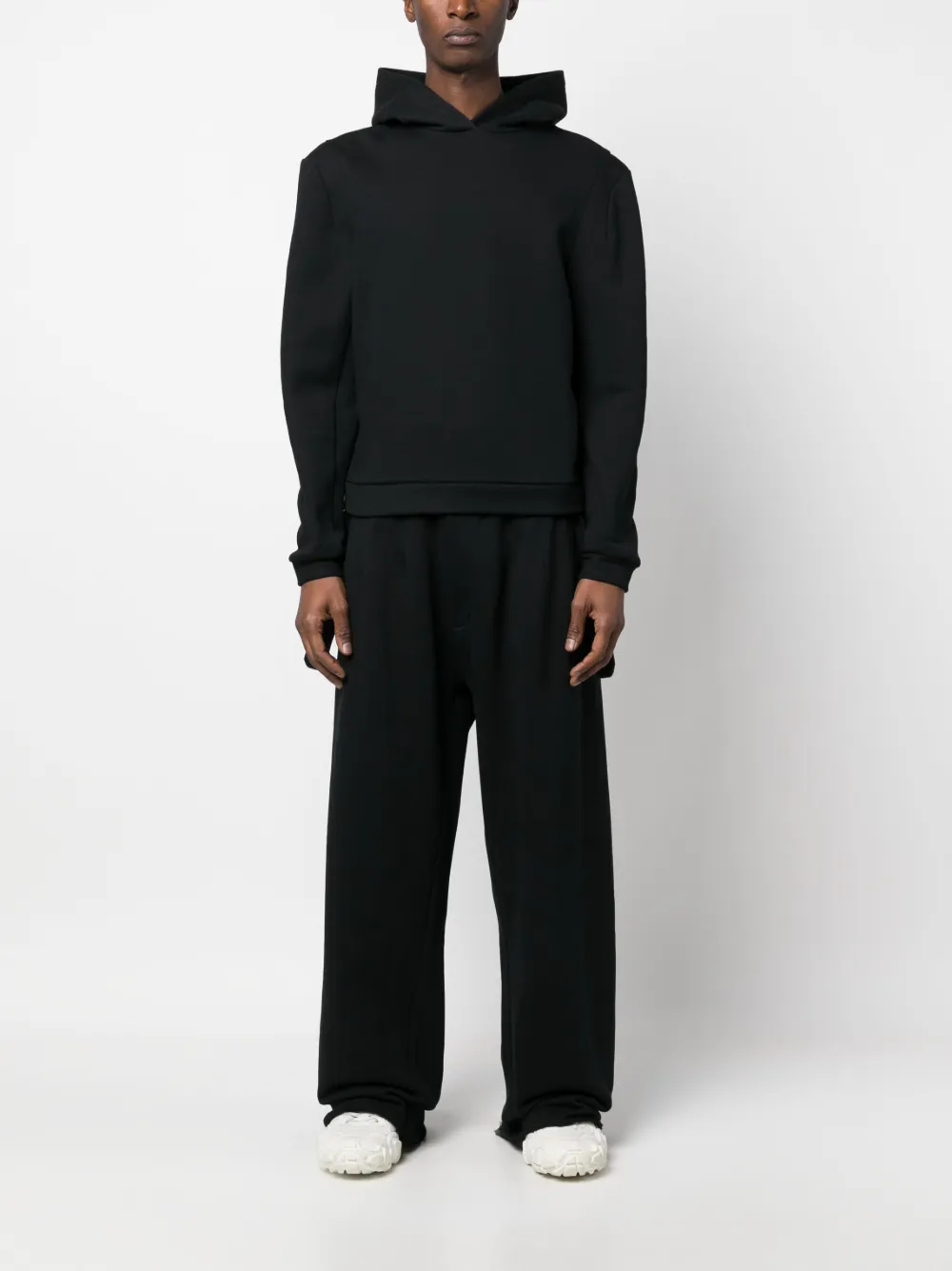 Черный, хлопок, классический капюшон, длинные рукава и прямой подол.