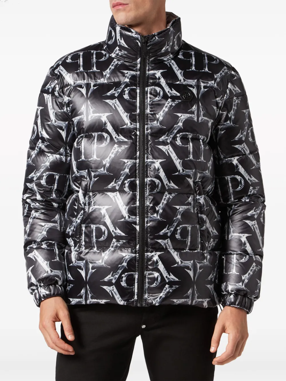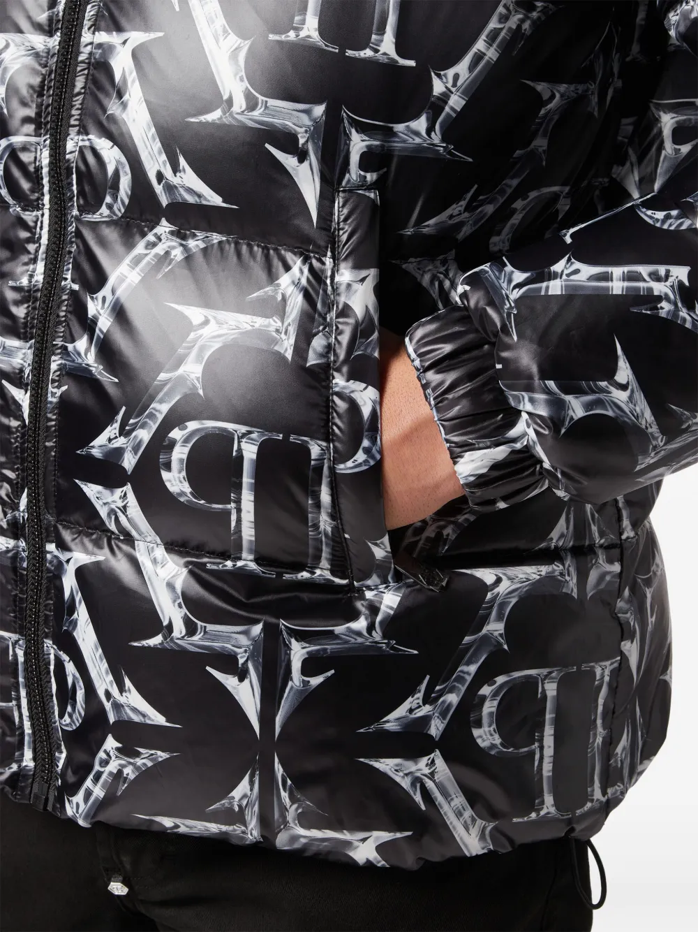 Стеганый пуховик с логотипом Philipp Plein, черный 65 100₽