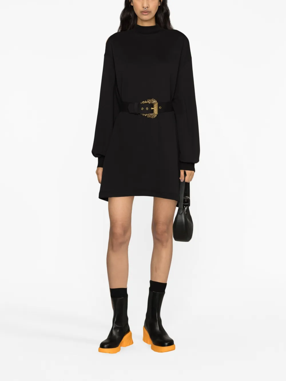 Платье мини с длинными рукавами и поясом Versace Jeans Couture, черный
