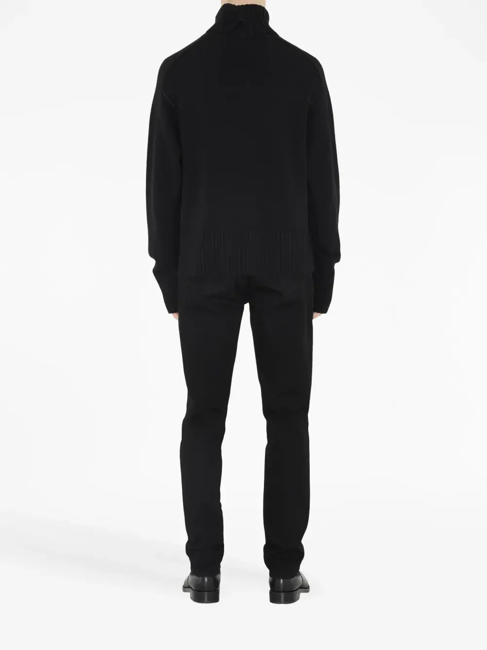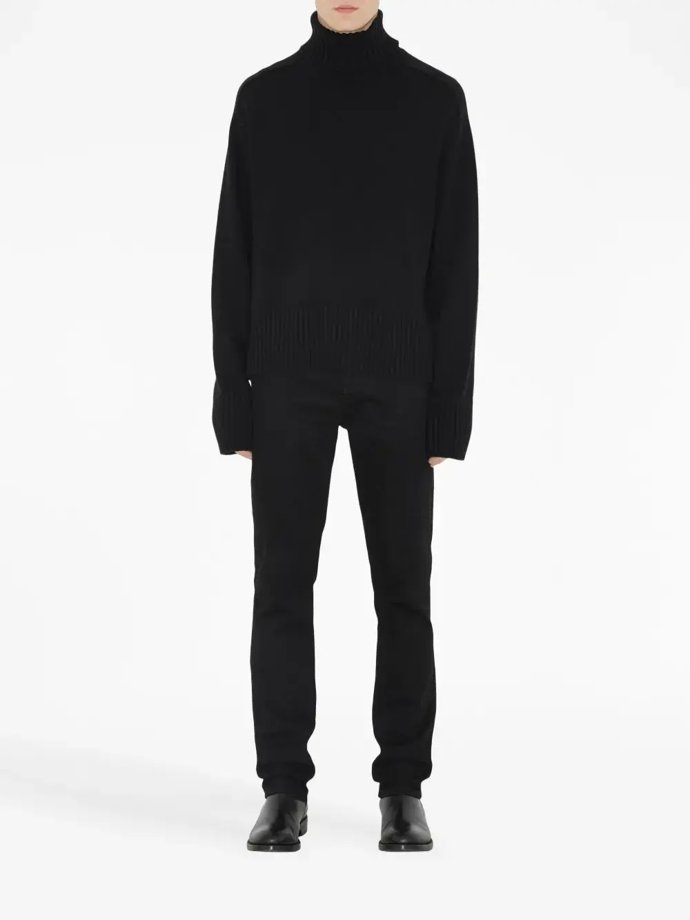 Черный, эластичный хлопок, деним, петли для ремня, ширинка на пуговицах, прямой крой, пять карманов и прямой подол.