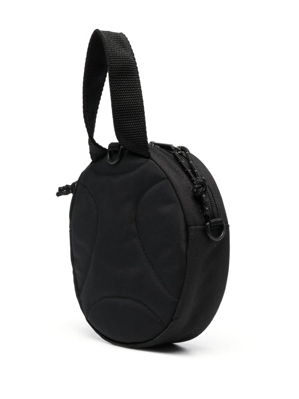 Черный, нашивка с логотипом спереди, ремень на плечо, верхняя ручка, основное отделение и застежка на молнии сверху.