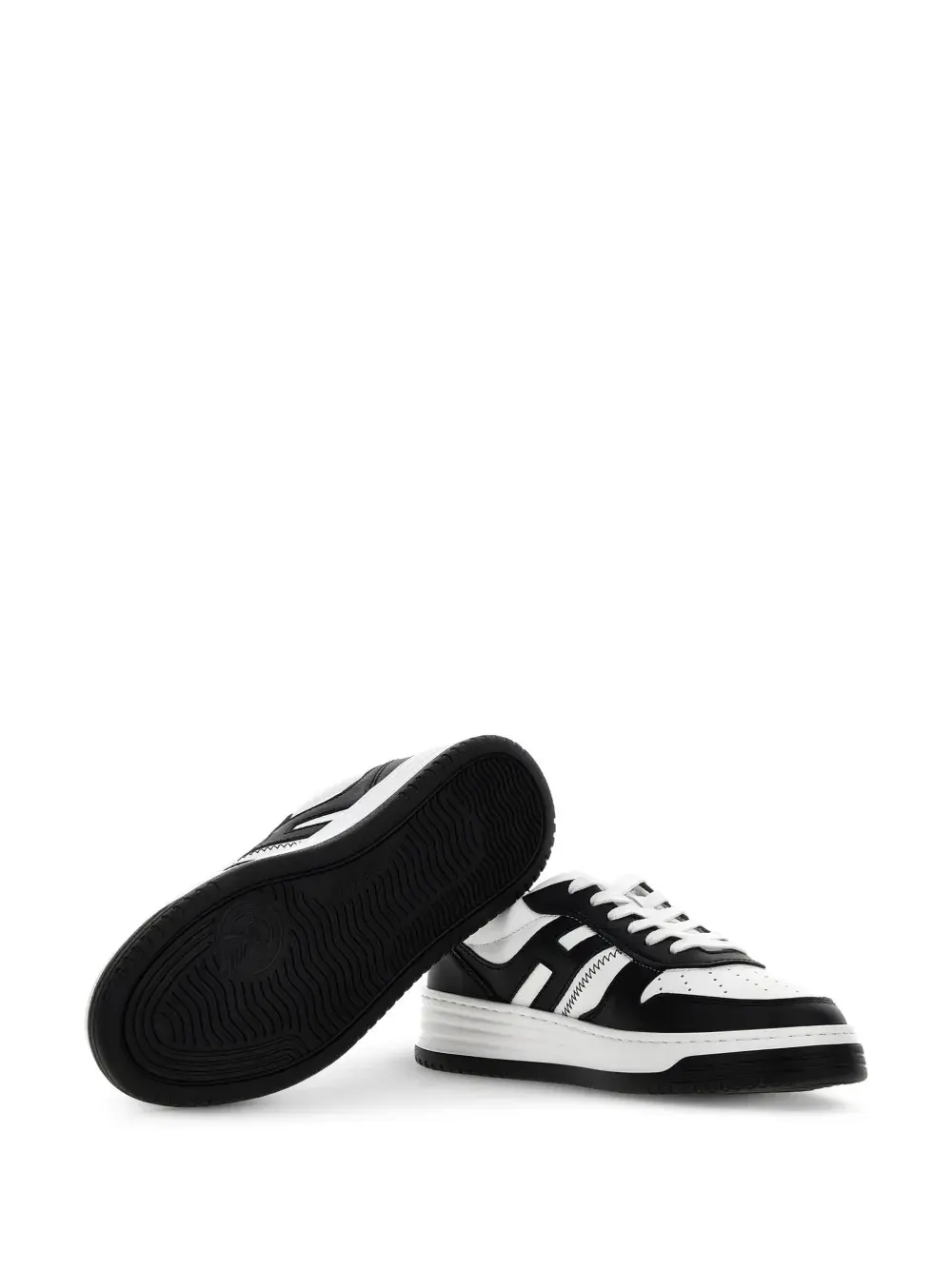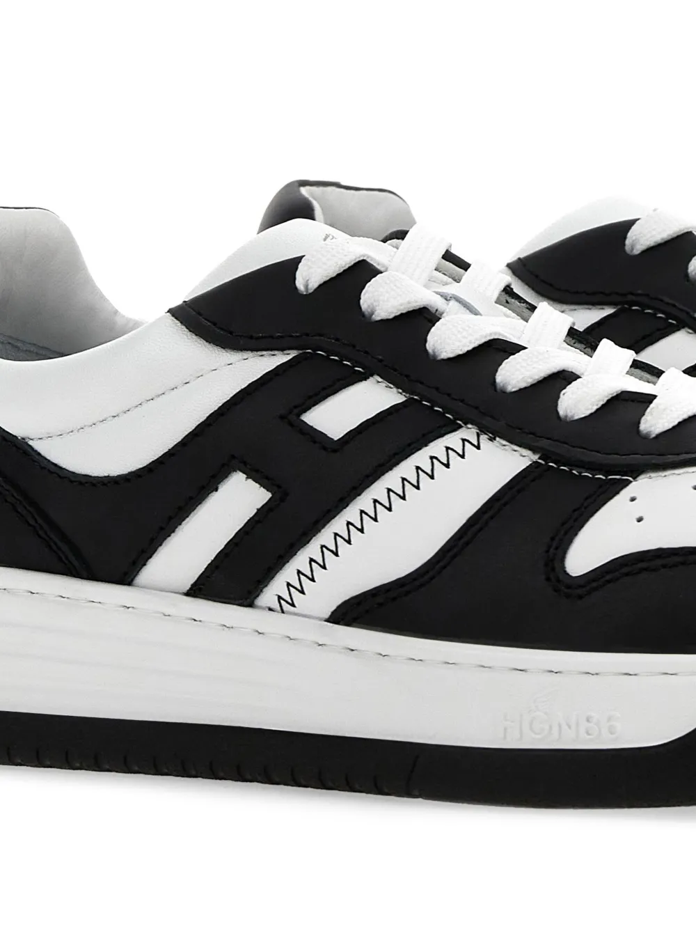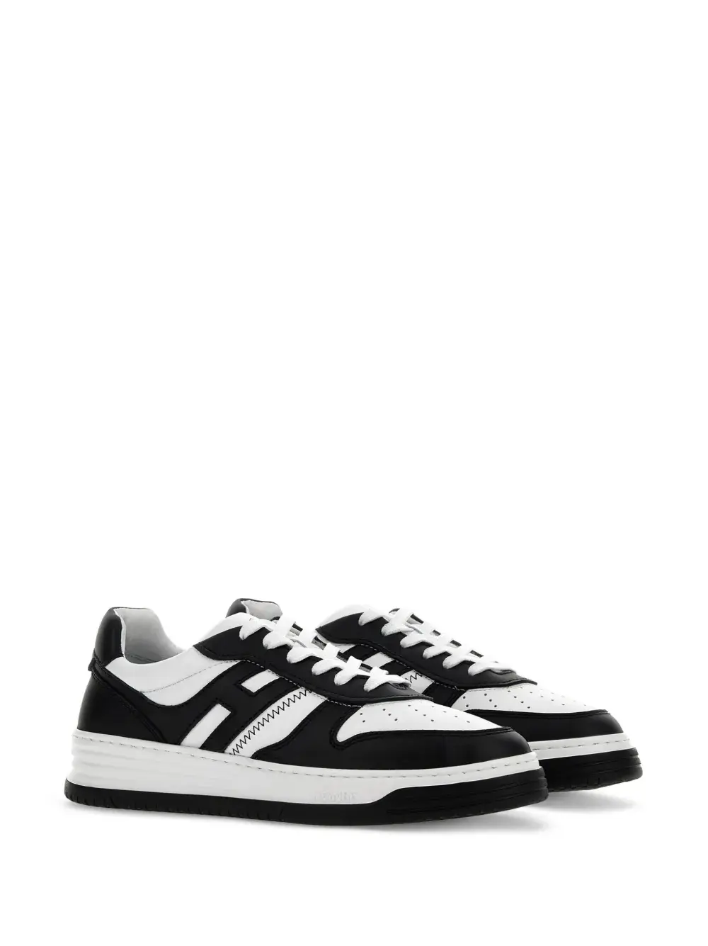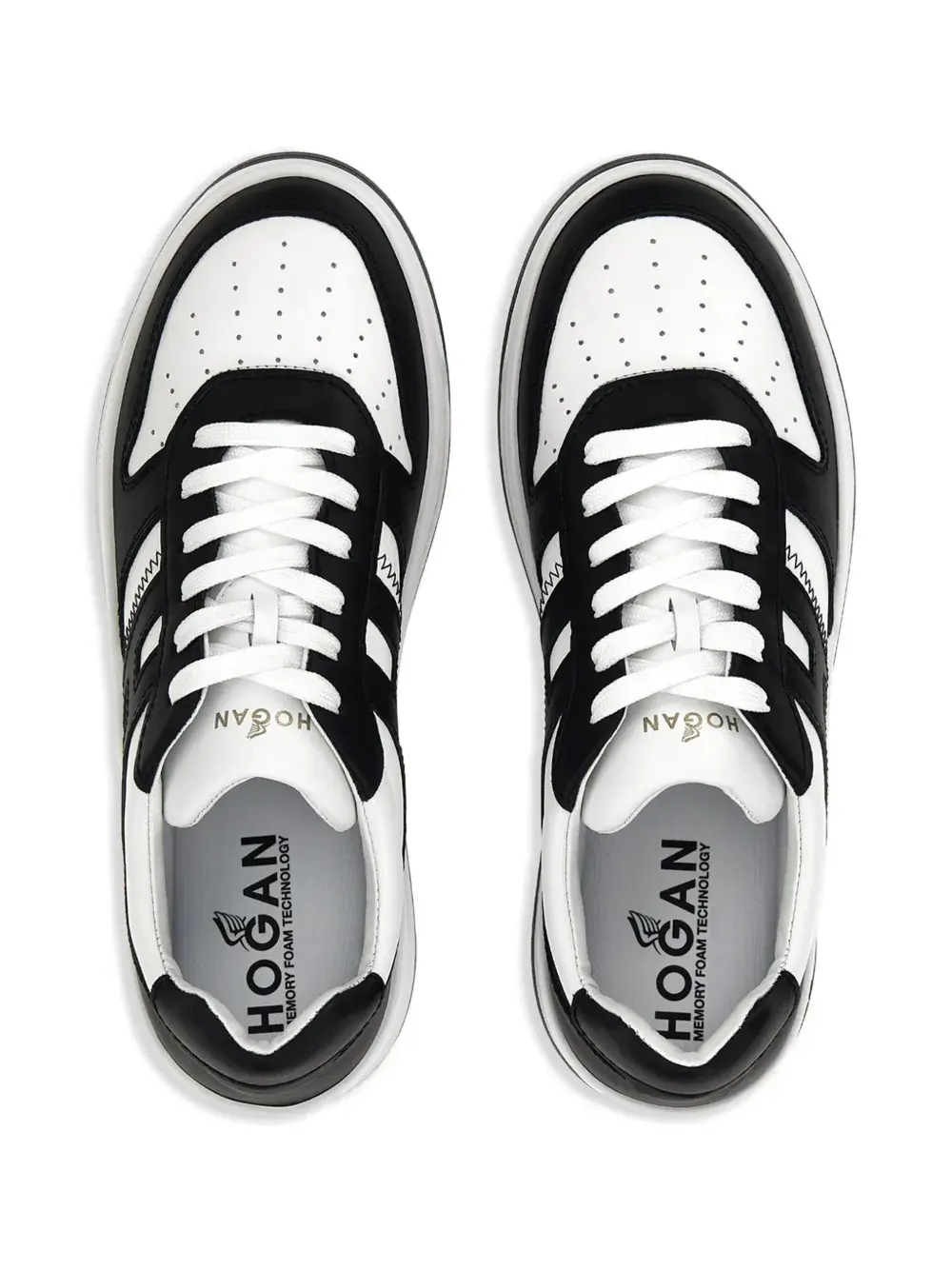 Белый/черный, телячья кожа, вставки, нашивка с логотипом сбоку, язычок с логотипом, перфорация, закругленный носок, шнуровка спереди и плоская резиновая подошва.