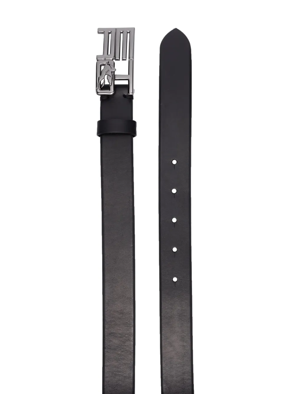 Черный, серебристый, телячья кожа, серебристая фурнитура, декоративные вырезы, застежка на пряжке с логотипом, заостренный кончик и регулируемый дизайн.