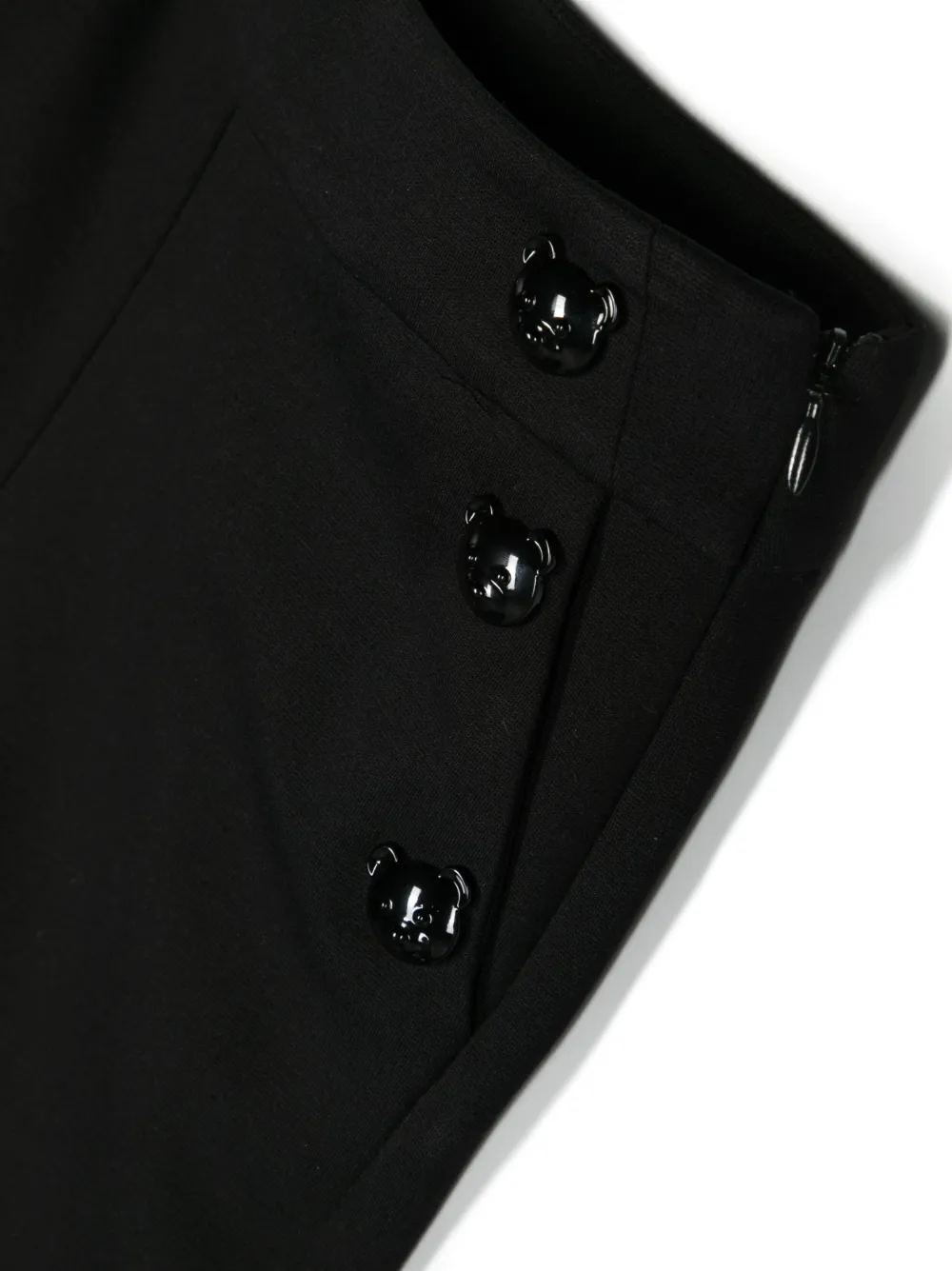 Черный, декор Teddy Bear, декоративные пуговицы, принт с логотипом сзади, застежка на молнии сбоку, два прорезных кармана по бокам и прямой крой.