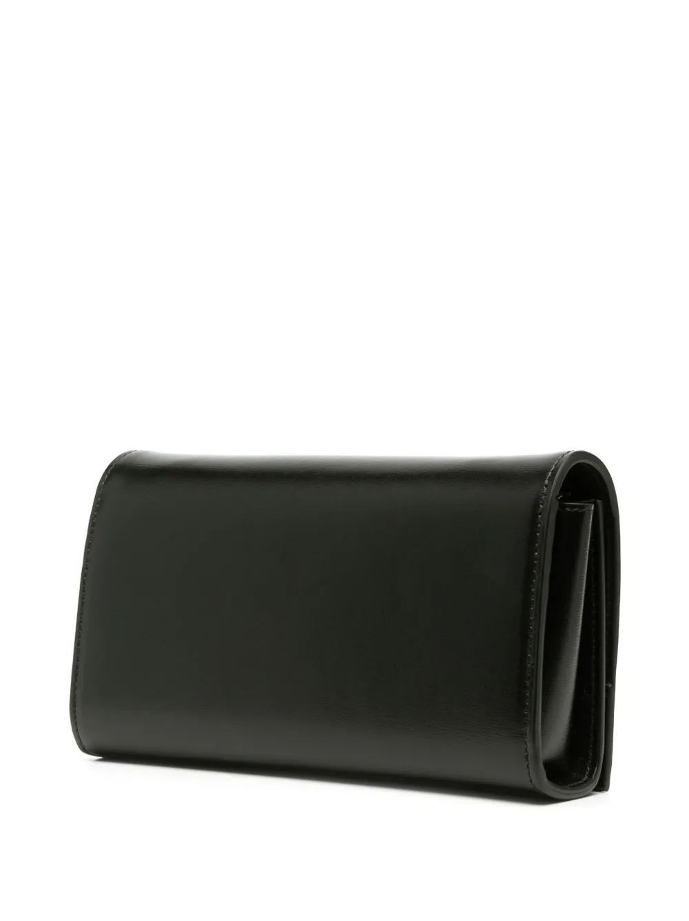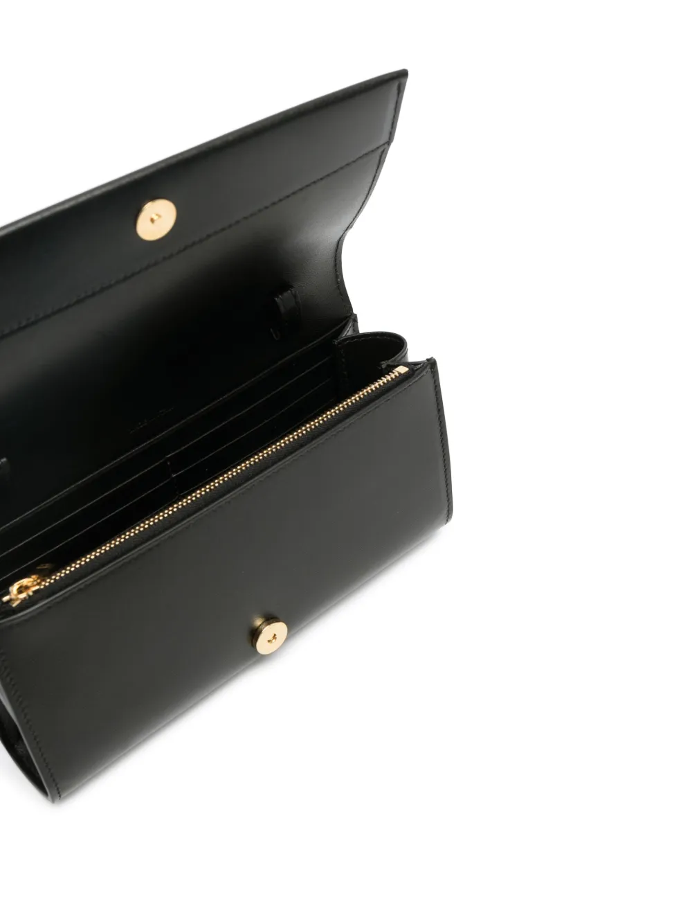 Черный, телячья кожа, гладкая текстура кожи, тисненый логотип спереди, прямоугольная форма, откидной клапан на магните, съемный регулируемый ремень на плечо, внутренний карман на молнии, несколько отделений и внутренние отделения для карт.