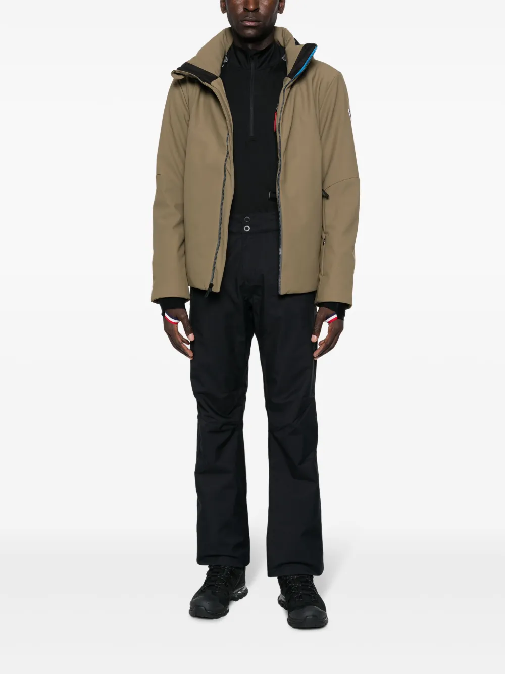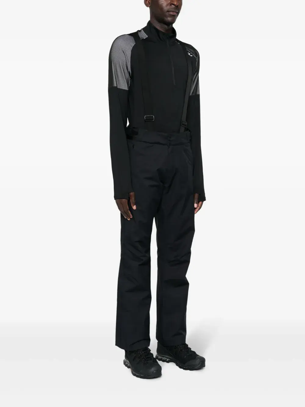 Подробнее о товаре: • черный • технологичная ткань • ткань с твиловым переплетением • легкая конструкция • водоотталкивающее покрытие • ветронепроницаемый материал • проклеенные швы • съемные лямки • прямой крой • застежка на кнопках спереди • нашивка с логотипом сбоку • регулируемый ремень на талию • два кармана на молнии по бокам • водонепроницаемая застежка на молнии • двойные стенки с изоляцией