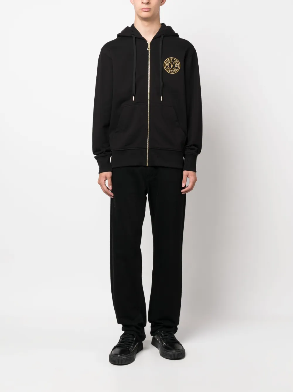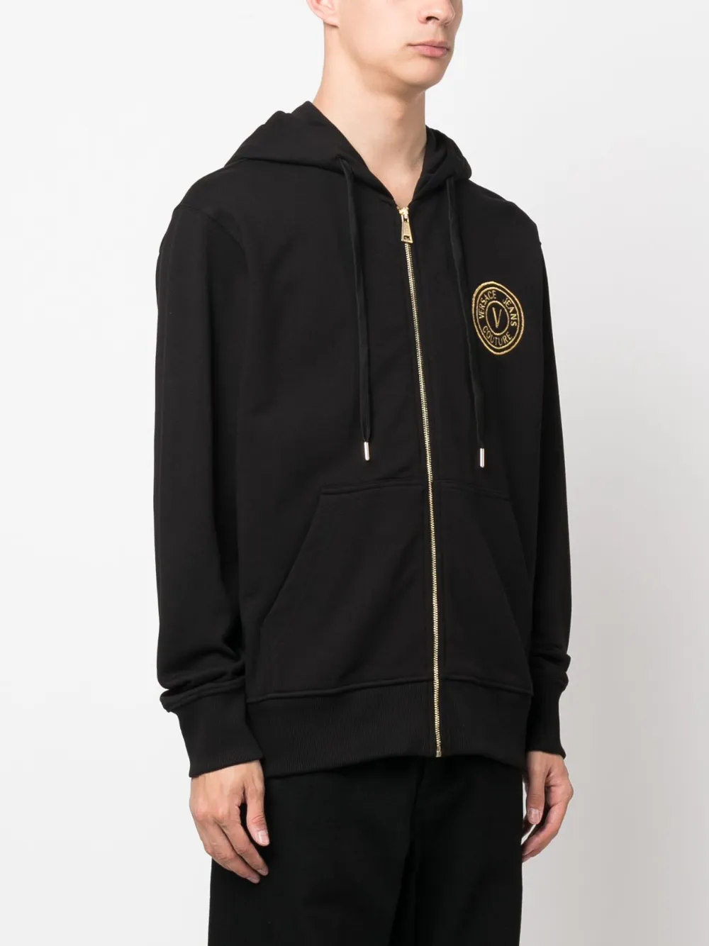 Худи на молнии с вышитым логотипом Versace Jeans Couture, черный