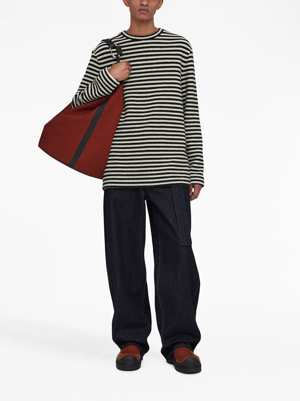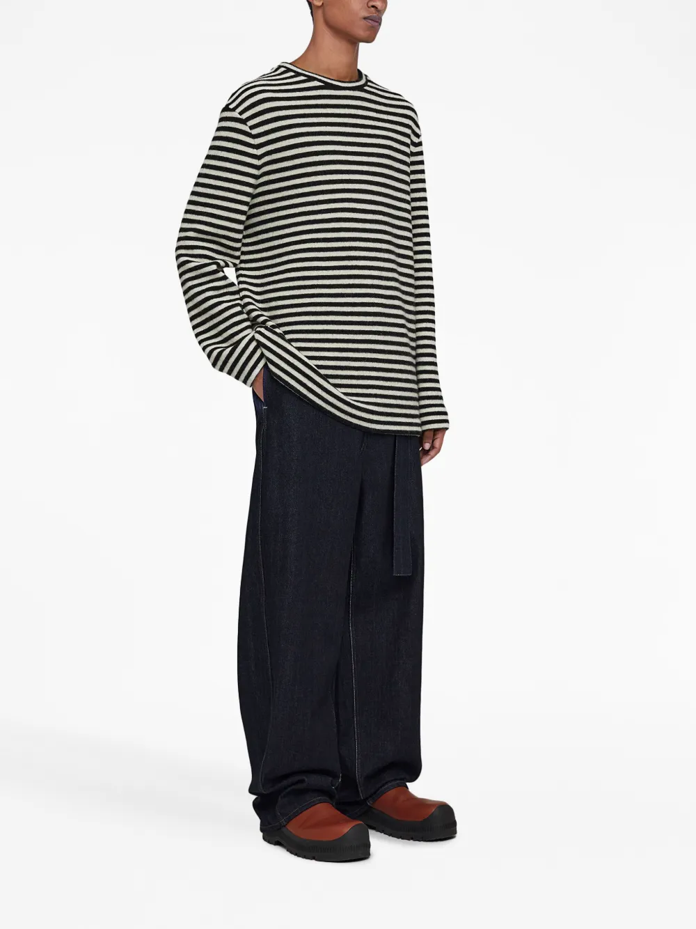 Шерстяной свитер в полоску JIL SANDER, черный