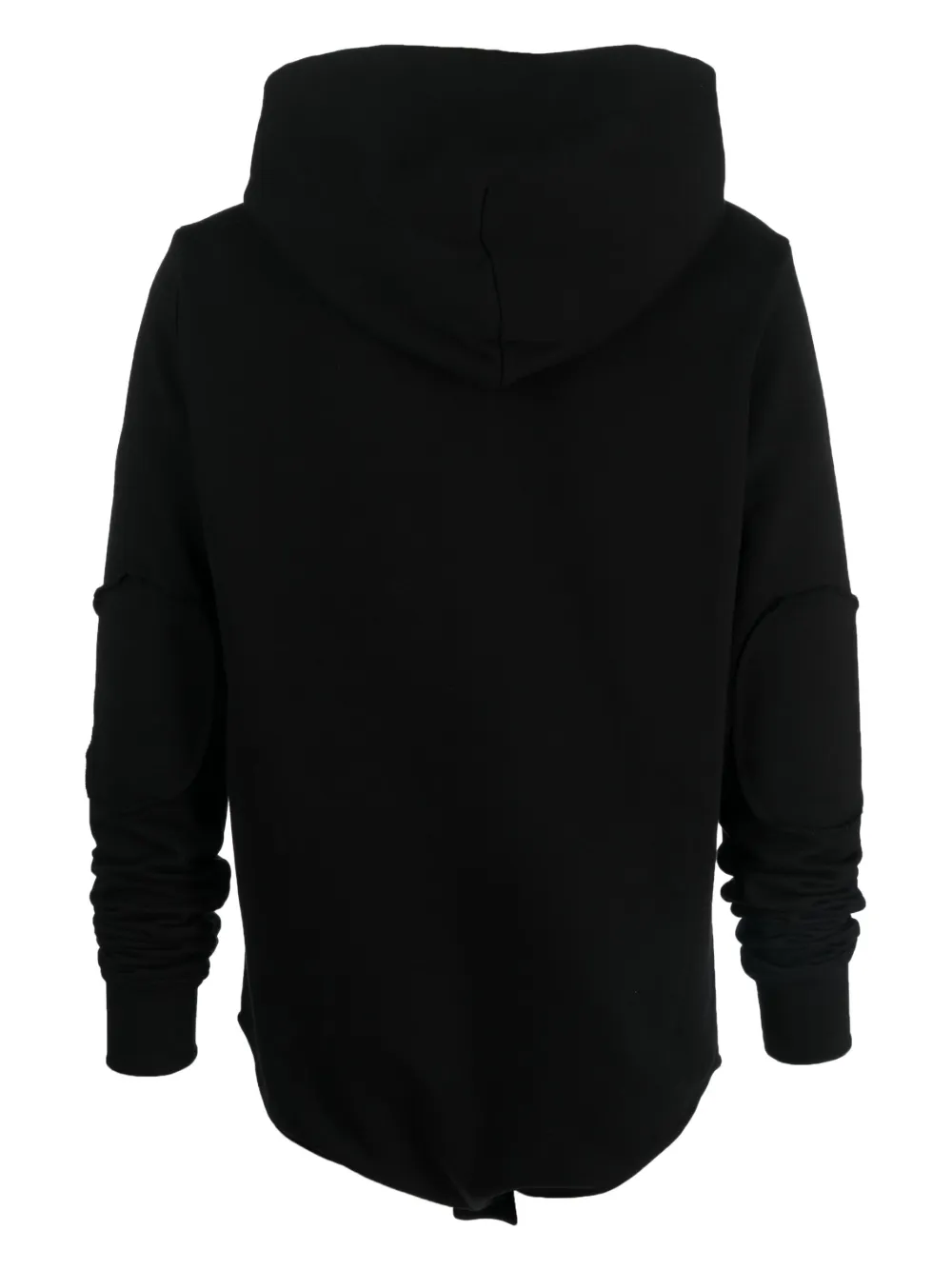 Черный/белый, хлопок, вышитый логотип спереди, нашивка с логотипом на рукаве, затягивающийся на шнурок капюшон, длинные рукава, асимметричный подол и серебристые заклепки.