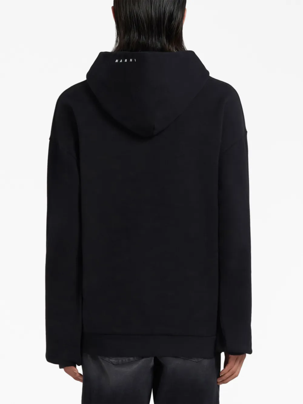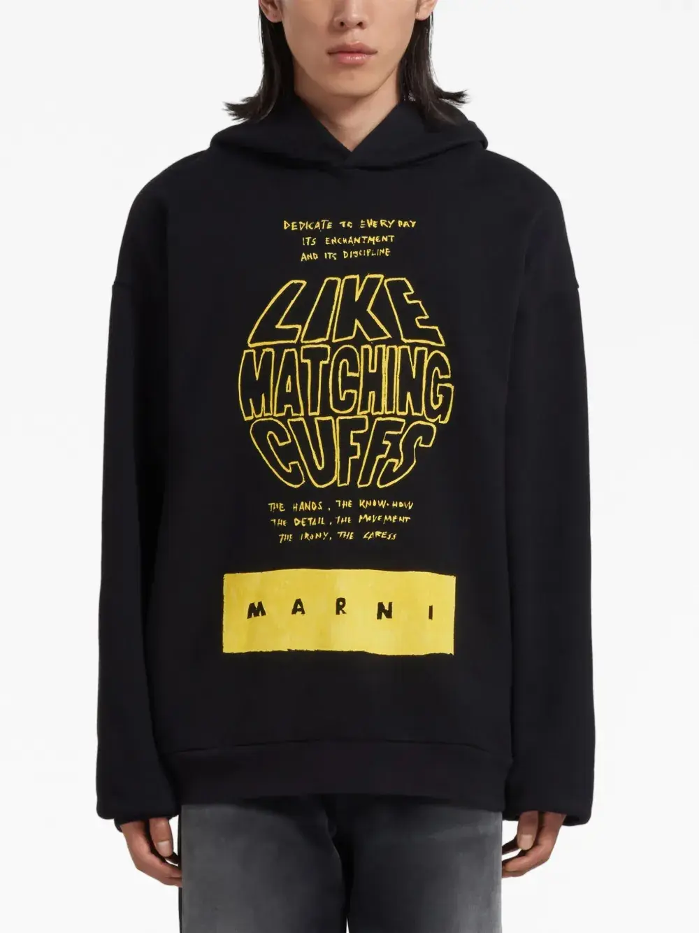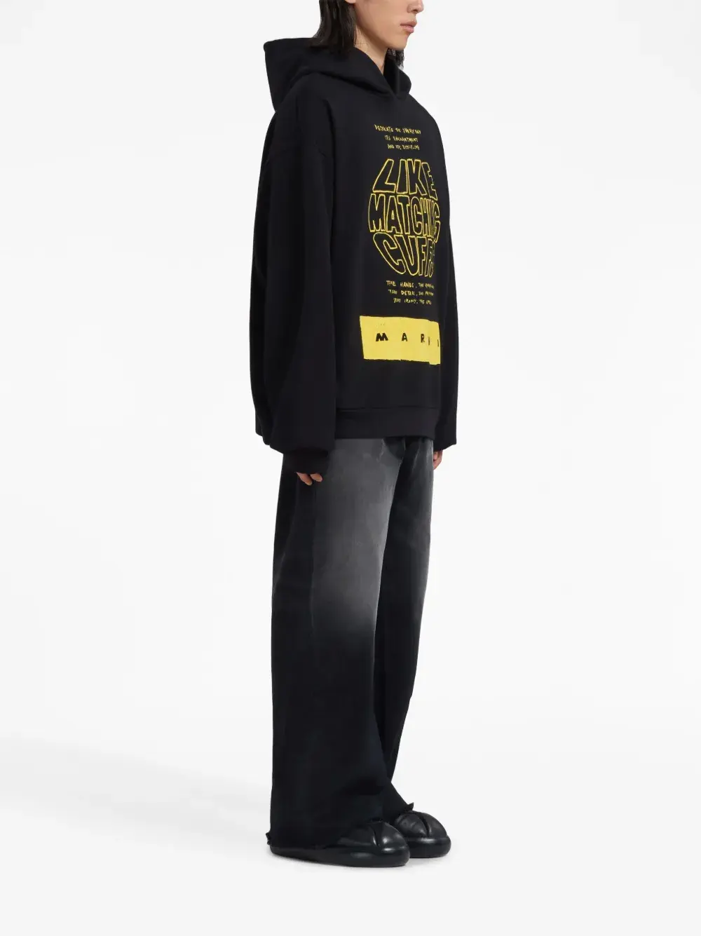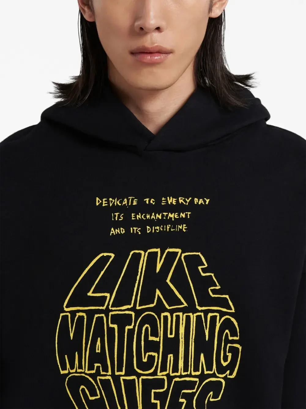 Черный, хлопок, принт с надписью спереди, логотип спереди, классический капюшон, приспущенные плечи, длинные рукава и прямой подол.