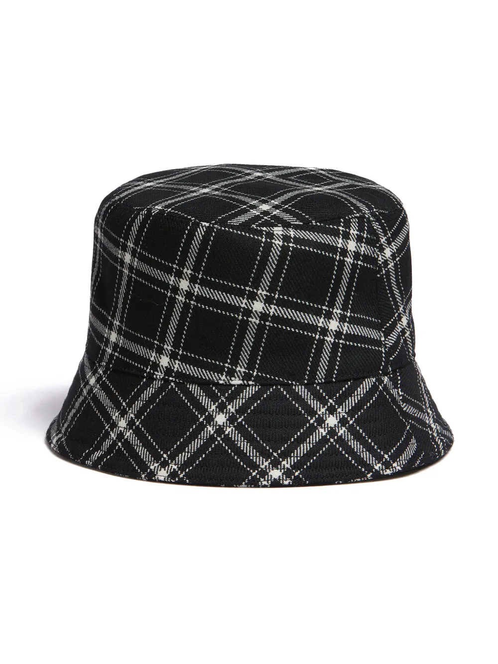 Черный/белый, хлопок, необработанная шерсть, клетчатый узор, вышитый логотип спереди, плоская тулья и узкие поля.