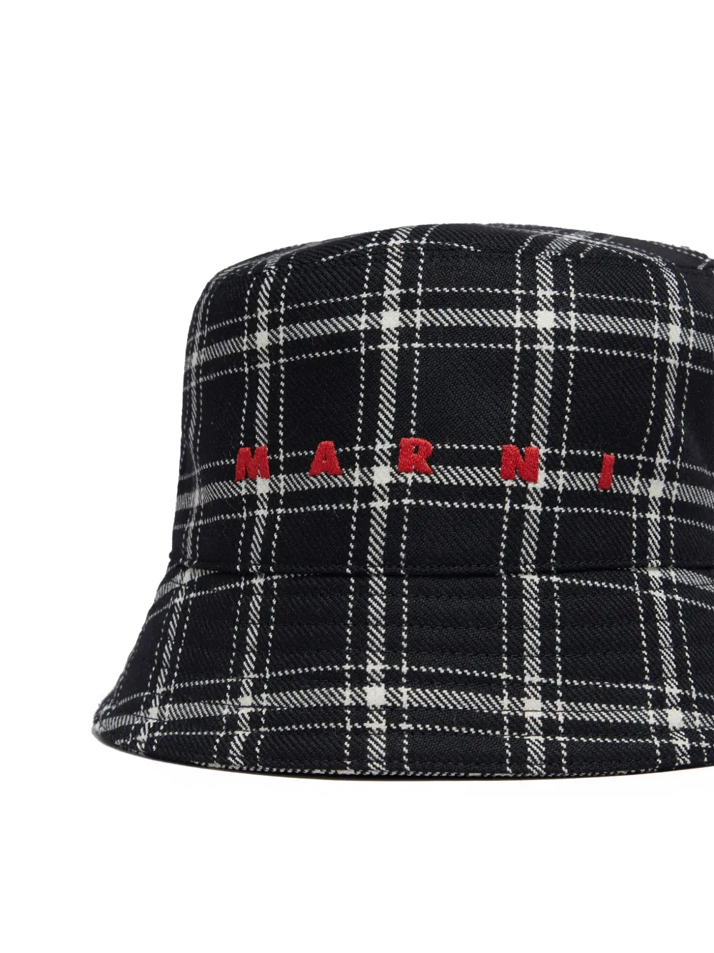 Клетчатая панама с вышитым логотипом Marni, черный 55 914₽