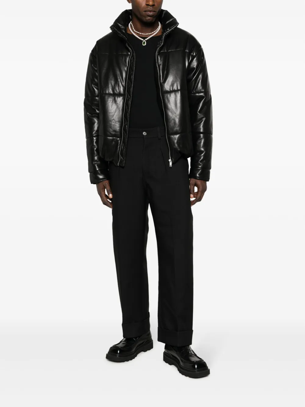 Черный, искусственная кожа, стеганая модель, дутый материал, высокий воротник, застежка на молнии спереди, два боковых кармана с листочкой, длинные рукава, манжеты на пуговицах и прямой подол. . Узнать больше о том, какие товары получают отметку «Ответственный выбор», можно из материала «Как мы оцениваем экологичность и этичность».