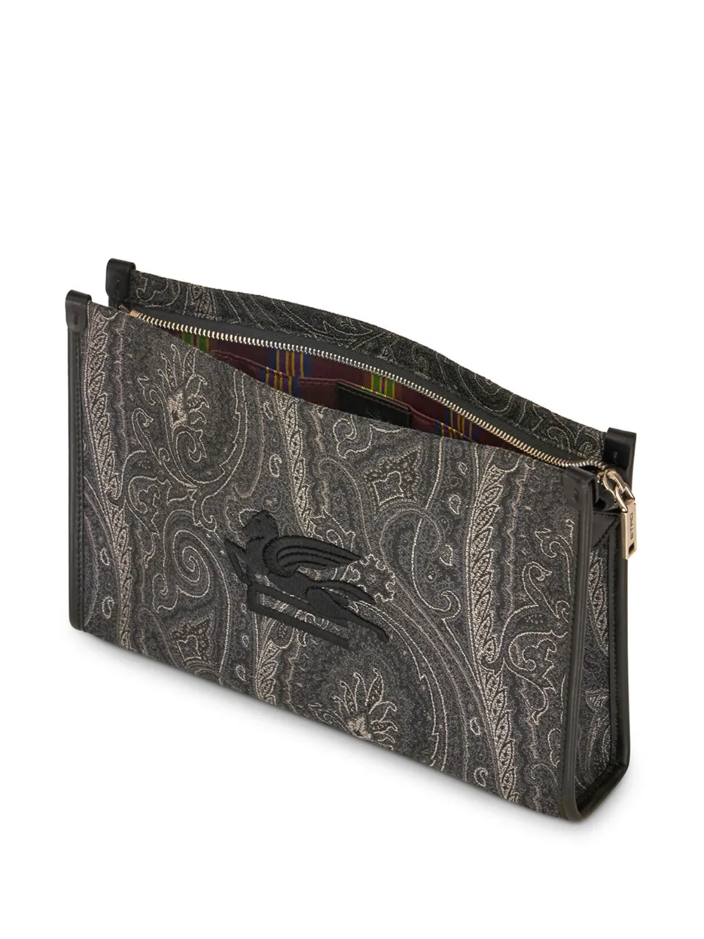 Черный/разноцветный, хлопок, жаккард, принт пейсли, узор Pegaso, застежка на молнии сверху, золотистая фурнитура, основное отделение, внутренние накладные карманы и съемный ремешок на запястье.
