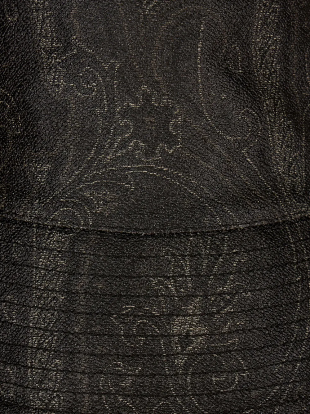 Черный, хлопок, принт пейсли, бирка с логотипом, узкие опущенные поля и модель без застежки.