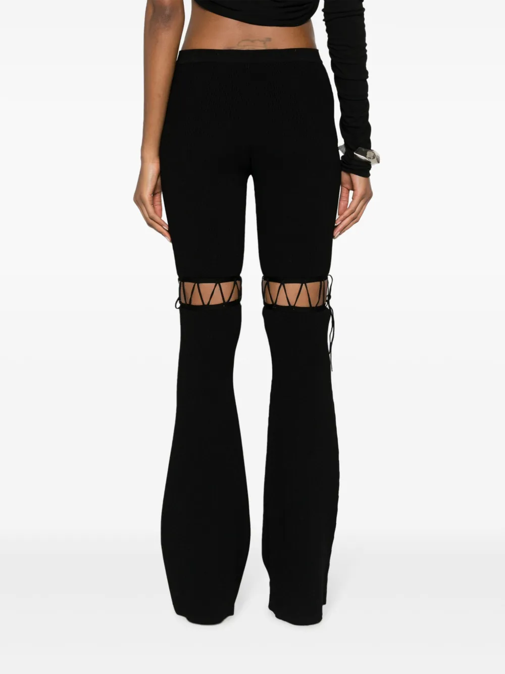 Черный, трикотаж в рубчик, средняя посадка, шнуровка и расклешенный крой.