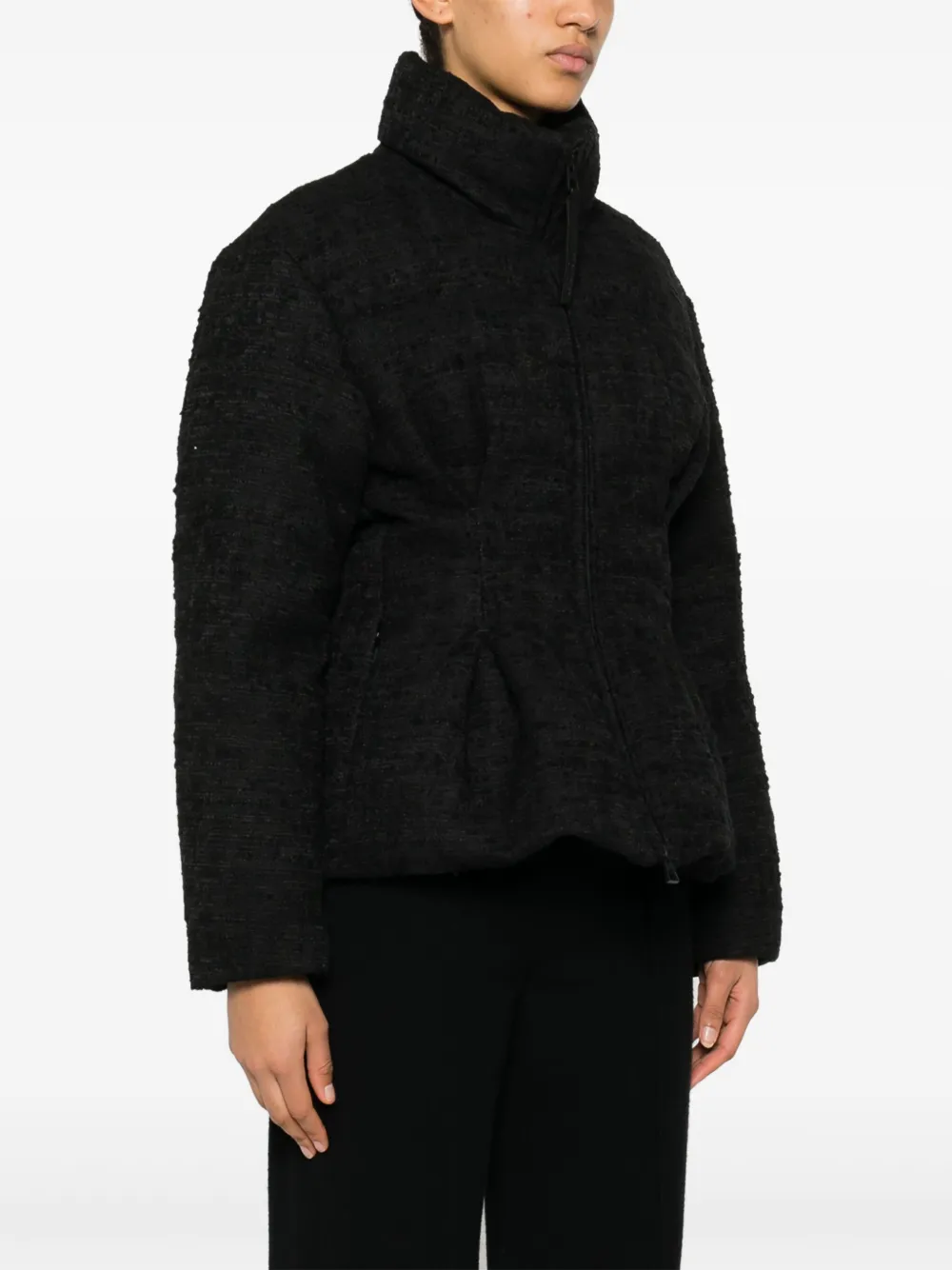 Подробнее о товаре: • черный • смесь хлопка и шерсти • наполнитель из смеси пуха и пера • твидовая ткань • дутый материал • воротник-стойка • длинные рукава • аппликация с логотипом на рукаве • приталенный силуэт • два кармана на молнии по бокам • петля внутри • внутренняя бирка с логотипом • цельная подкладка • закругленный подол • двусторонняя молния спереди • На этой вещи есть штамп, подтверждающий ее подлинность.