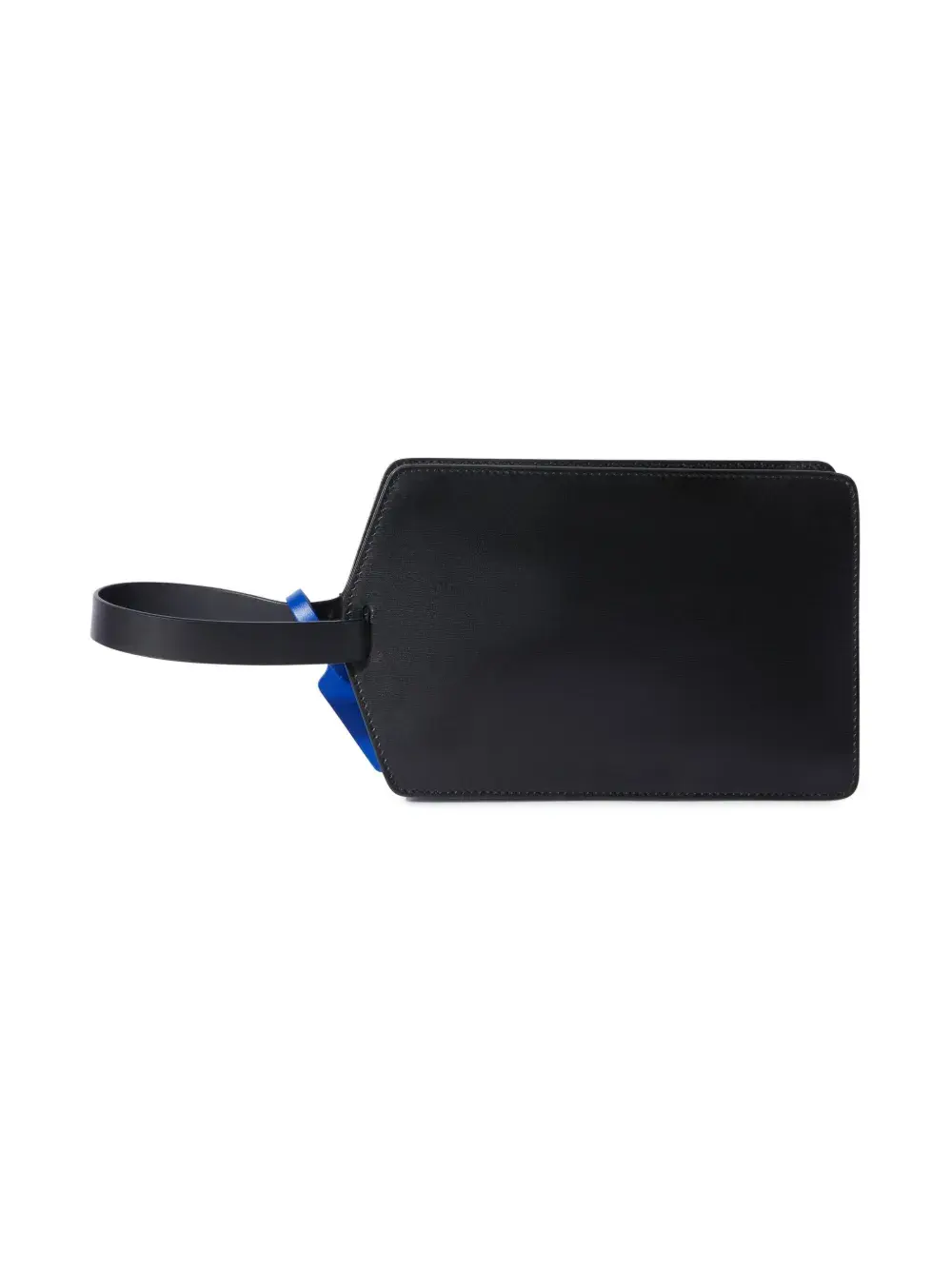 Черный, телячья кожа, бирка Zip Tie, логотип спереди, застежка на молнии сверху, ремешок на запястье и основное отделение.