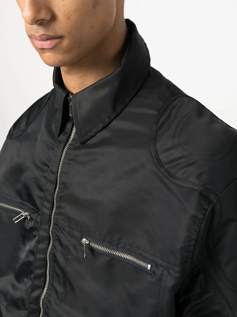 Черный, заплатки на локтях, плоский заостренный воротник, застежка на молнии спереди, длинные рукава и два нагрудных кармана на молнии. Узнать больше о том, какие товары получают отметку «Ответственный выбор», можно из материала «Как мы оцениваем экологичность и этичность».