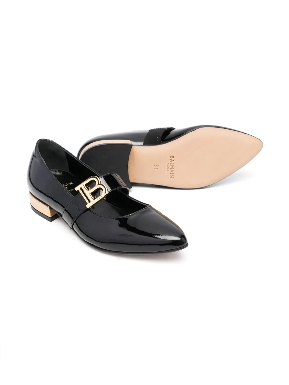 Балетки с металлическим логотипом Balmain Kids, черный 50 430₽