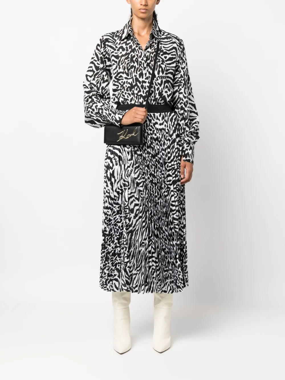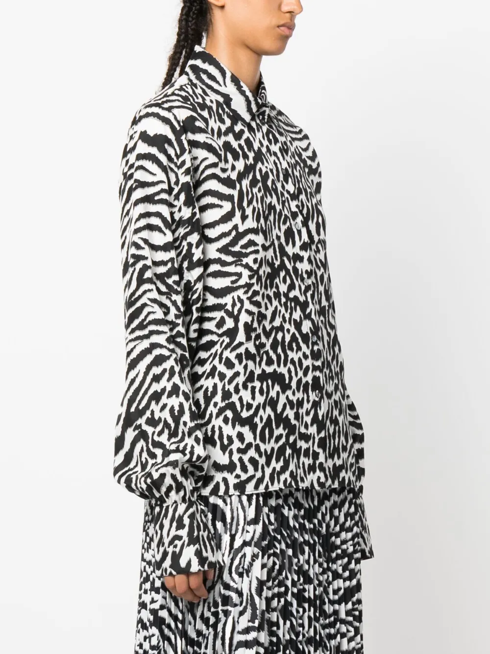 Черный/белый, анималистичный принт, сплошной принт с логотипом, отложной воротник, застежка на пуговицах спереди, длинные рукава, манжеты с разрезами и прямой подол.