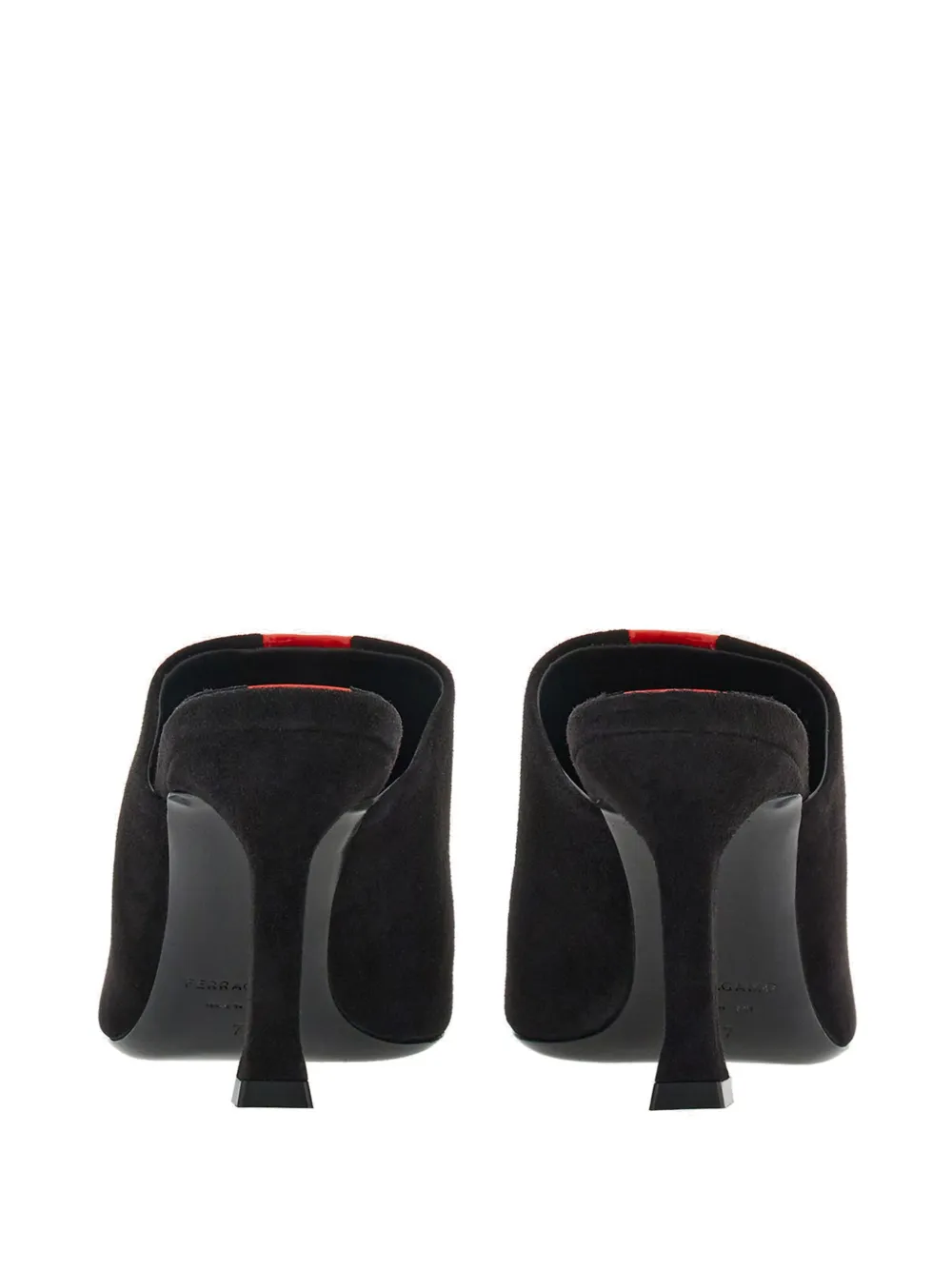 Черный/красный, замша из козьей кожи, телячья кожа, полоски, заостренный носок, высокий каблук и модель без застежки.