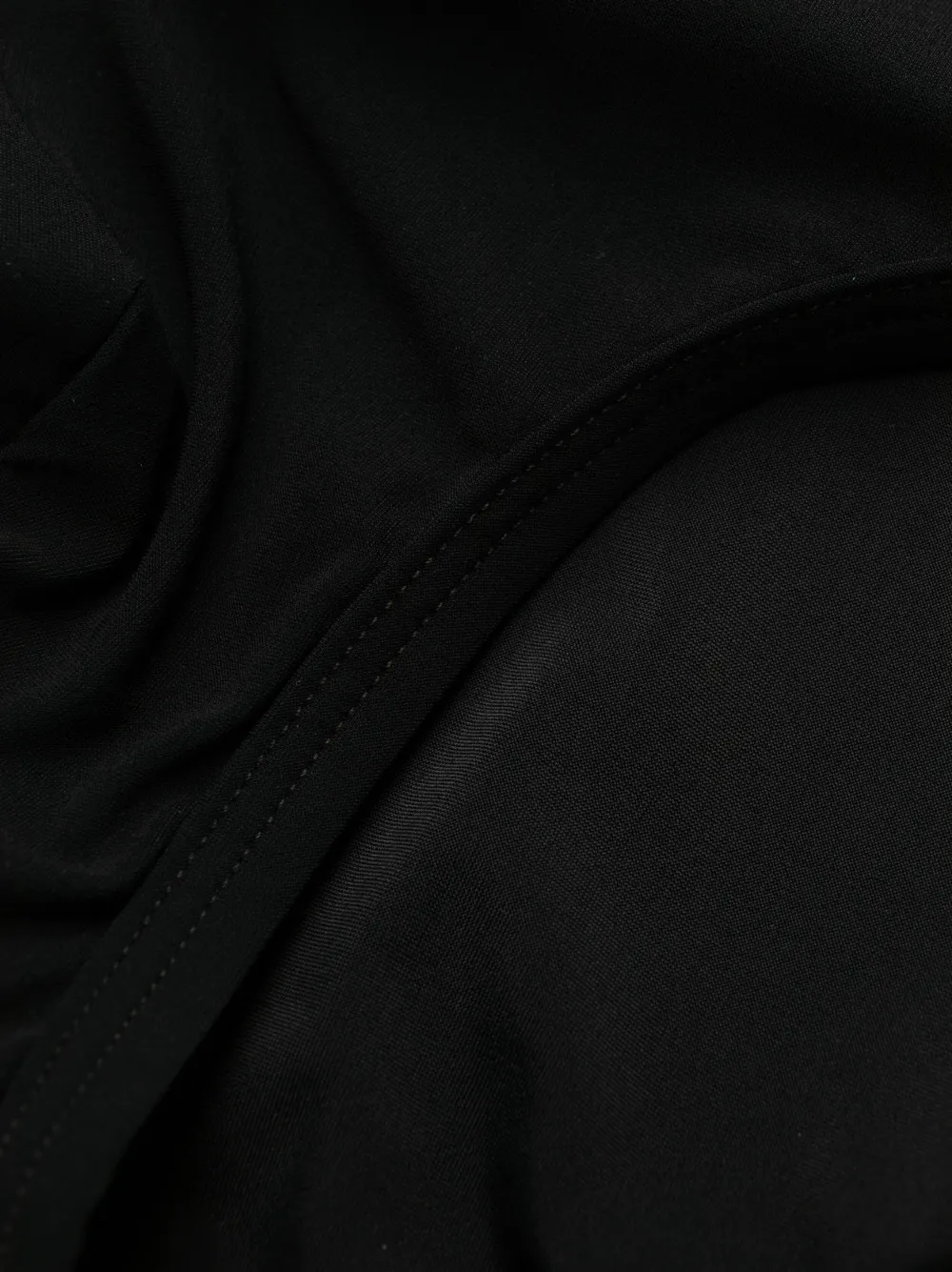 Черный, эластичный материал, металлический логотип, шнурки с логотипом и кулиска на талии. Пожалуйста, примеряйте купальники и пляжные шорты только поверх собственного белья.