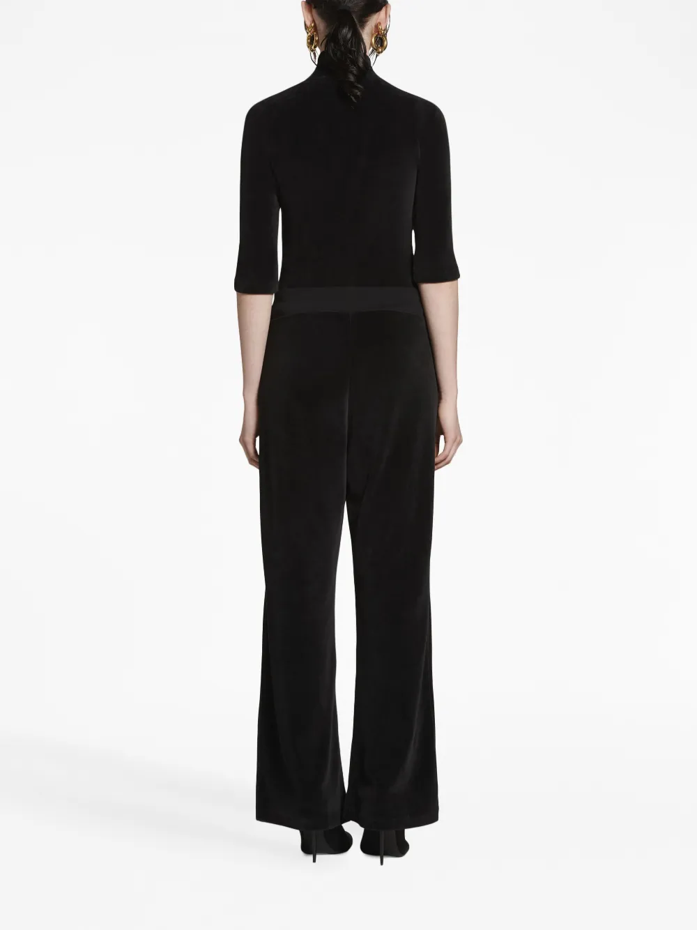 Черный, хлопок, бархат, декоративный шарф, высокий воротник, короткие рукава и прямой подол. Узнать больше о том, какие товары получают отметку «Ответственный выбор», можно из материала «Как мы оцениваем экологичность и этичность».
