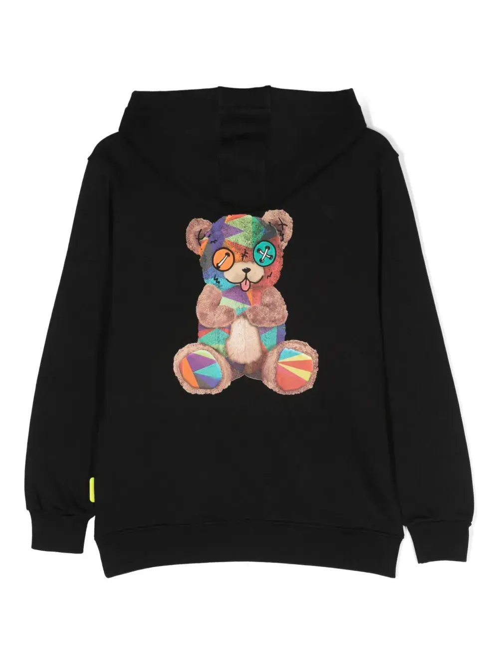 Черный, хлопок, модель анорак, принт с изображением плюшевого медведя, логотип спереди, длинные рукава и объемный капюшон на шнурке.
