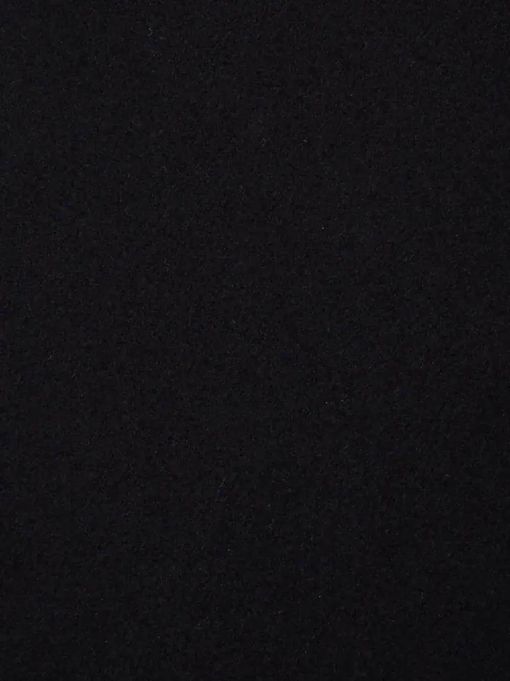 Черный, смесовая необработанная шерсть, косой воротник, застежка на зажиме спереди, два накладных кармана спереди, боковые разрезы, длина ниже колена и прямой подол.
