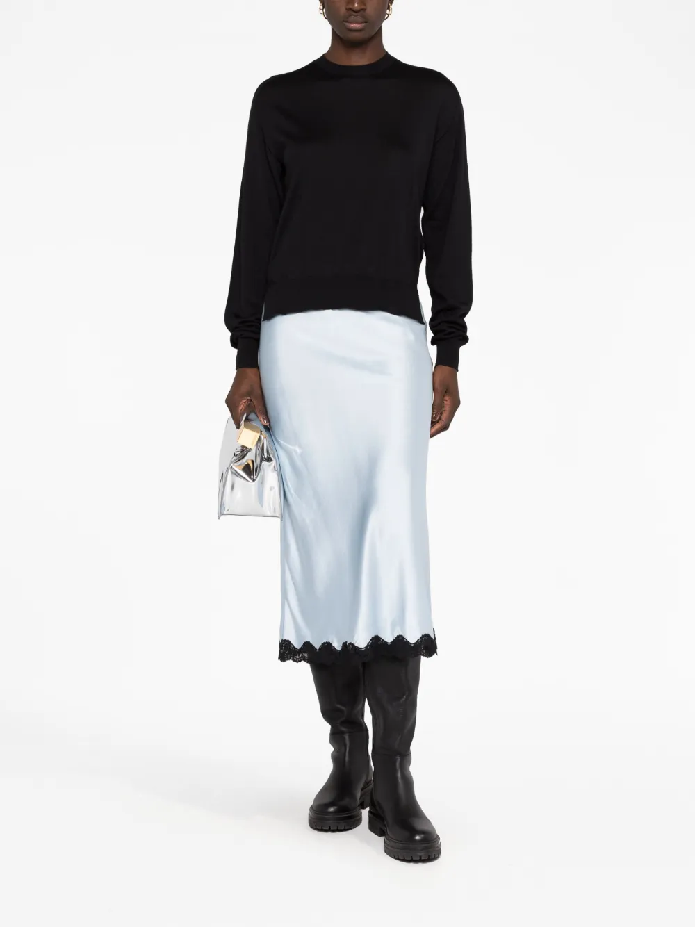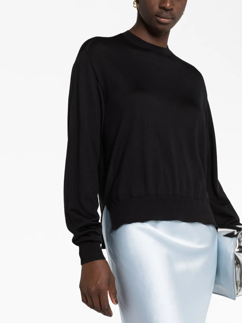 Джемпер с круглым вырезом в рубчик JIL SANDER, черный