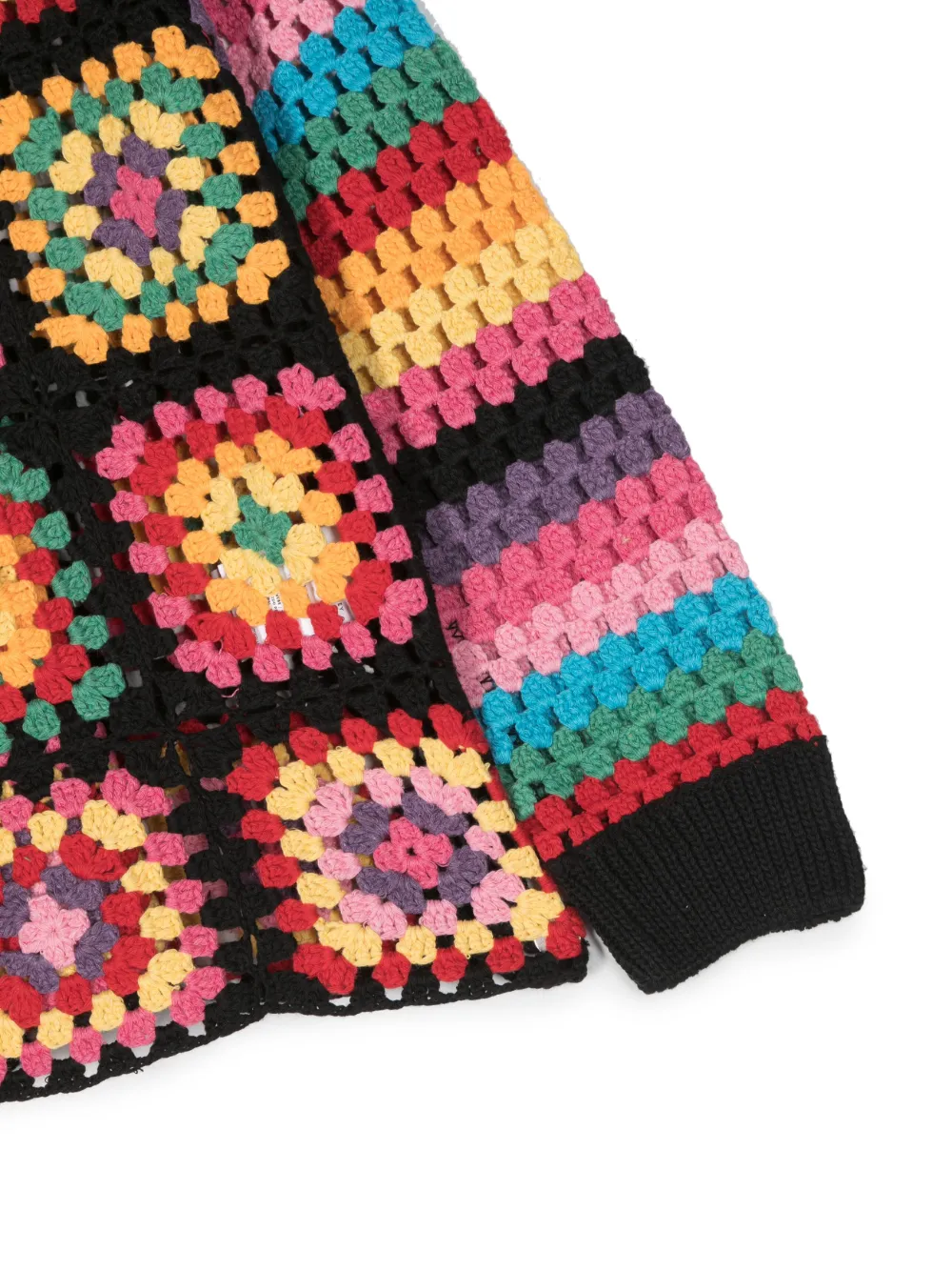 Черный, разноцветный, ажурная вязка, вязка в технике интарсия, отделка в рубчик, круглый вырез, длинные рукава и прямой подол. Узнать больше о том, какие товары получают отметку «Ответственный выбор», можно из материала «Как мы оцениваем экологичность и этичность».