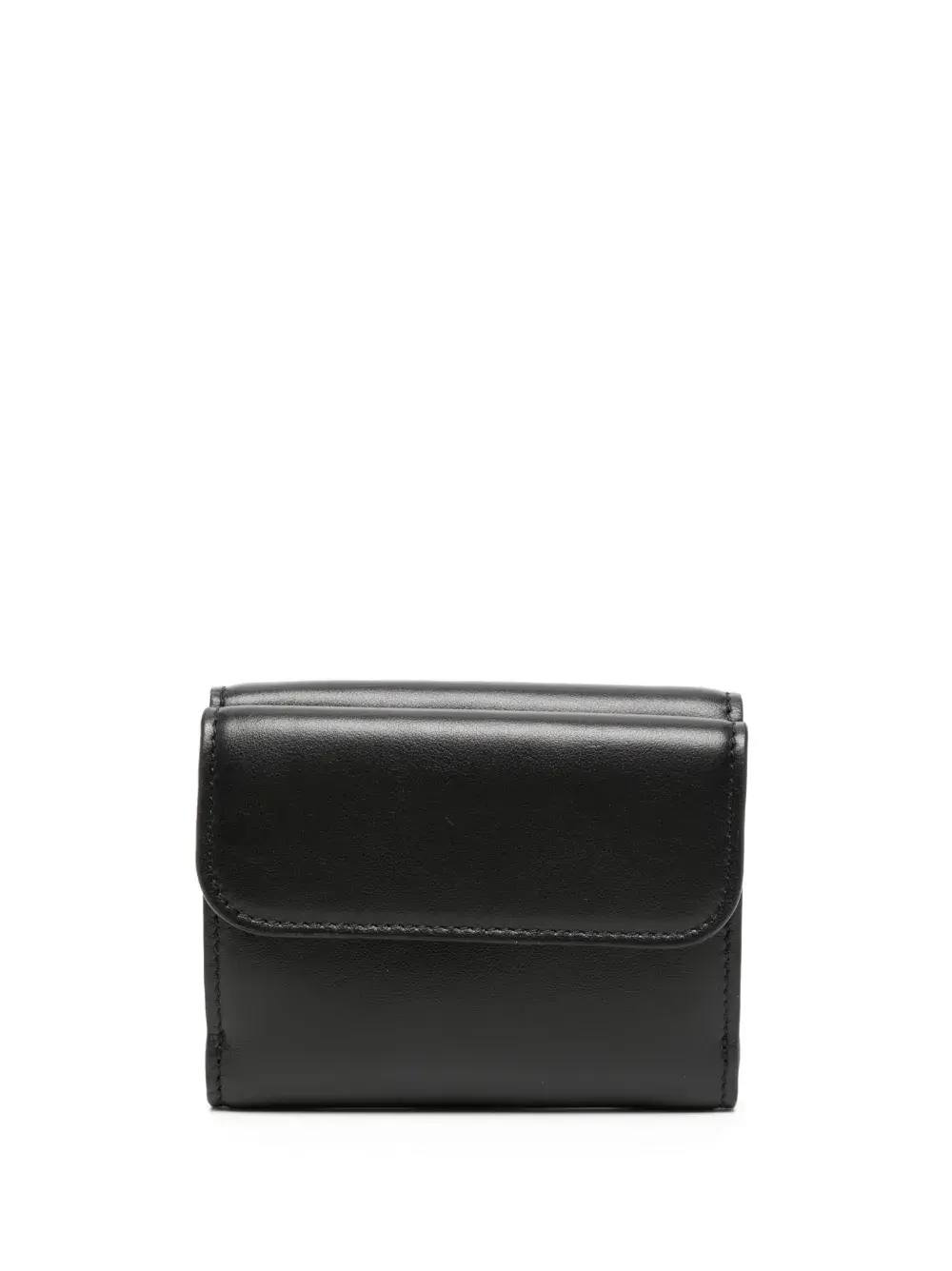 Три сложения, вышитый логотип спереди, тисненый логотип внутри, откидной верх с застежкой на кнопки, карман с клапаном сзади, внутренние отделения для карт и отделение для купюр.