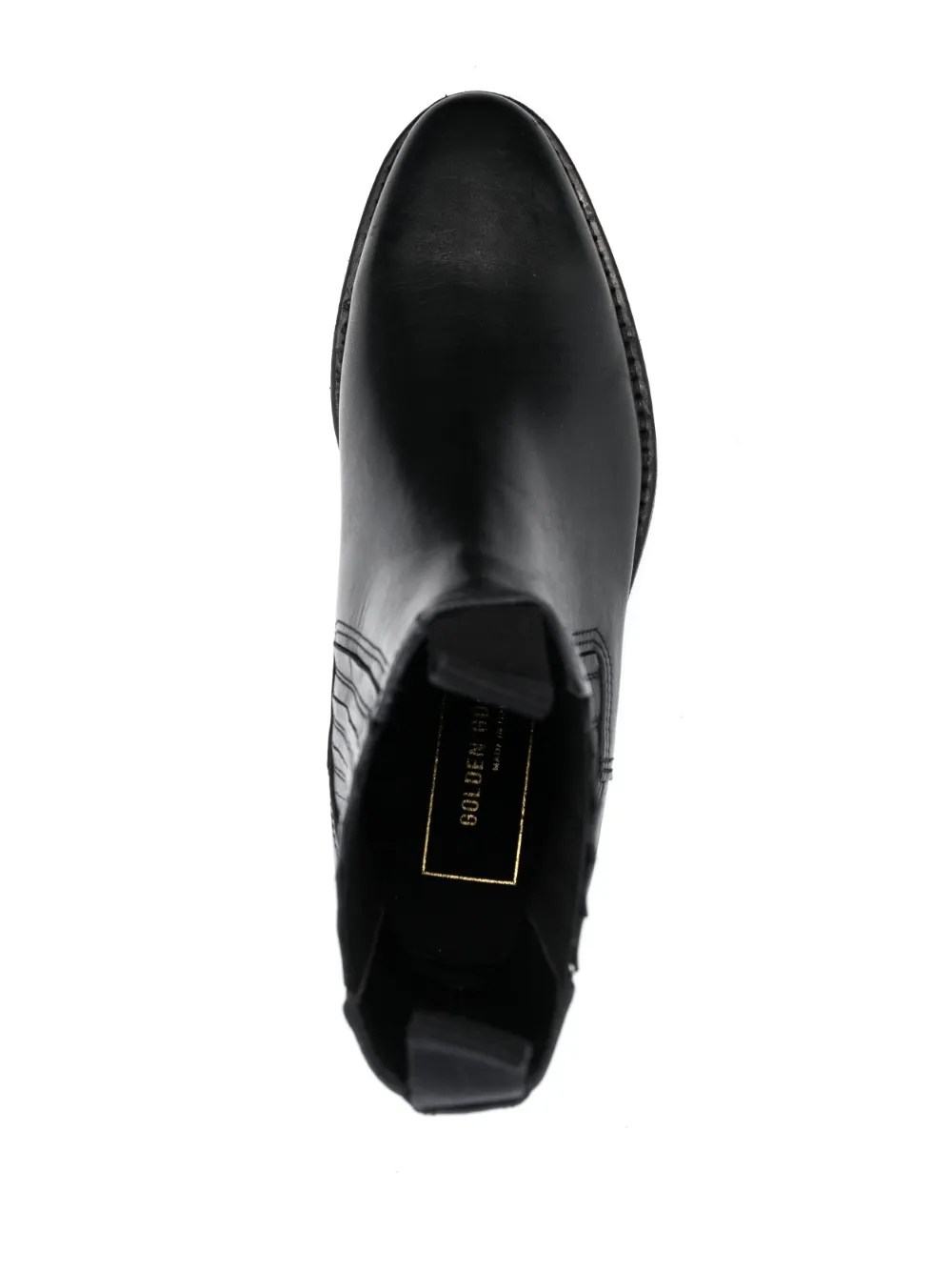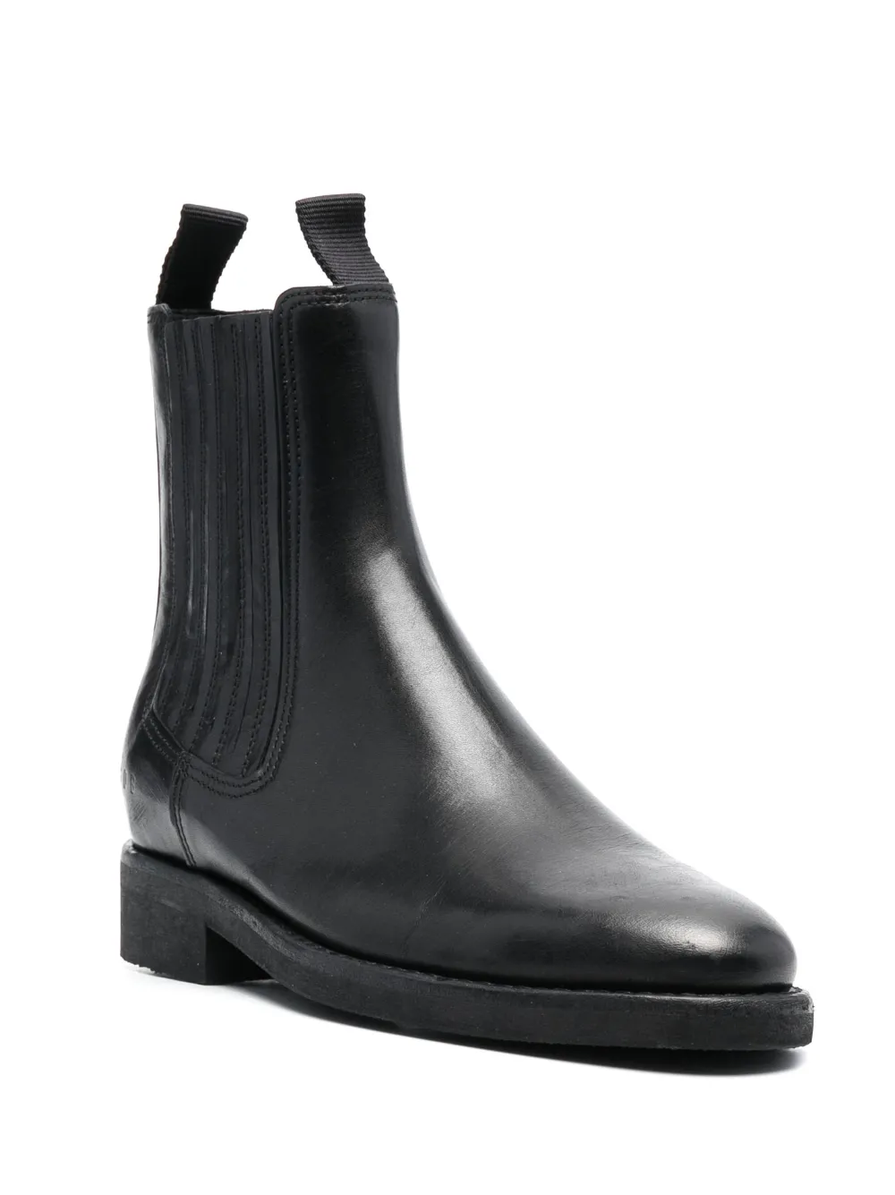 Черный, телячья кожа, подвеска с логотипом, двойная петля для подтягивания, эластичные боковые вставки, миндалевидный носок, модель без застежки, стелька с логотипом и резиновая подошва.