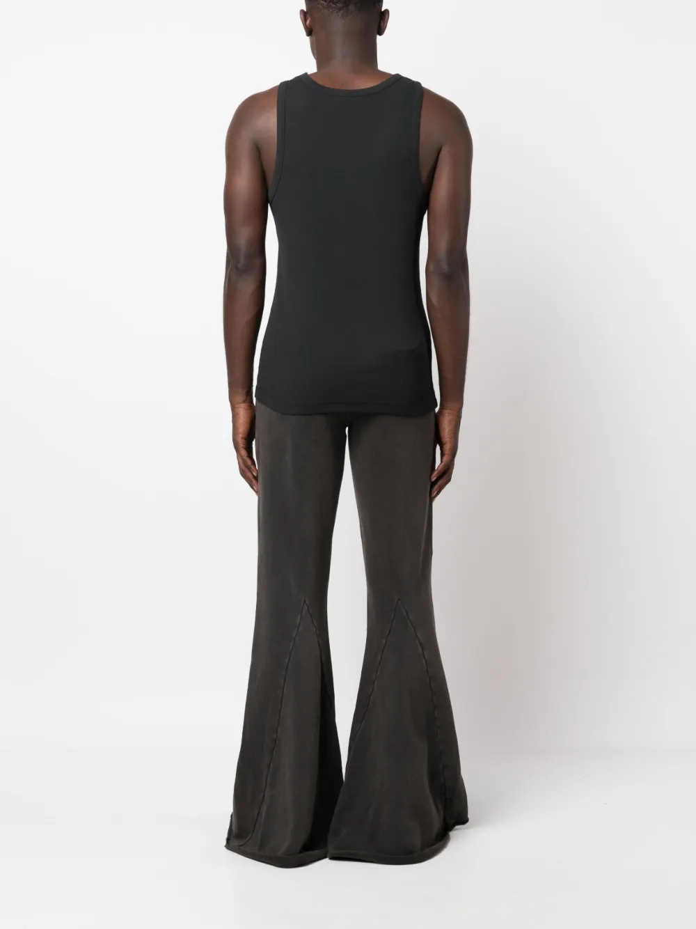 Подробнее о товаре: Черный, органический хлопок, эффект потертости, подвернутый подол, эластичный пояс, расклешенный крой, два вшитых кармана по бокам, задние карманы с листочкой и длина макси. Это унисекс-модель. Обратите внимание, что для нее используется мужская размерная сетка. Узнать больше о том, какие товары получают отметку «Ответственный выбор», можно из материала «Как мы оцениваем экологичность и этичность».
