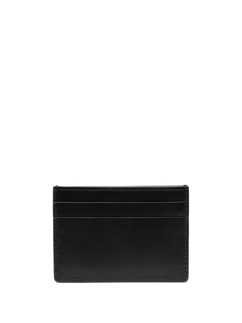 Черный, телячья кожа, гладкая текстура кожи, нашивка с логотипом спереди и отделения для карт.
