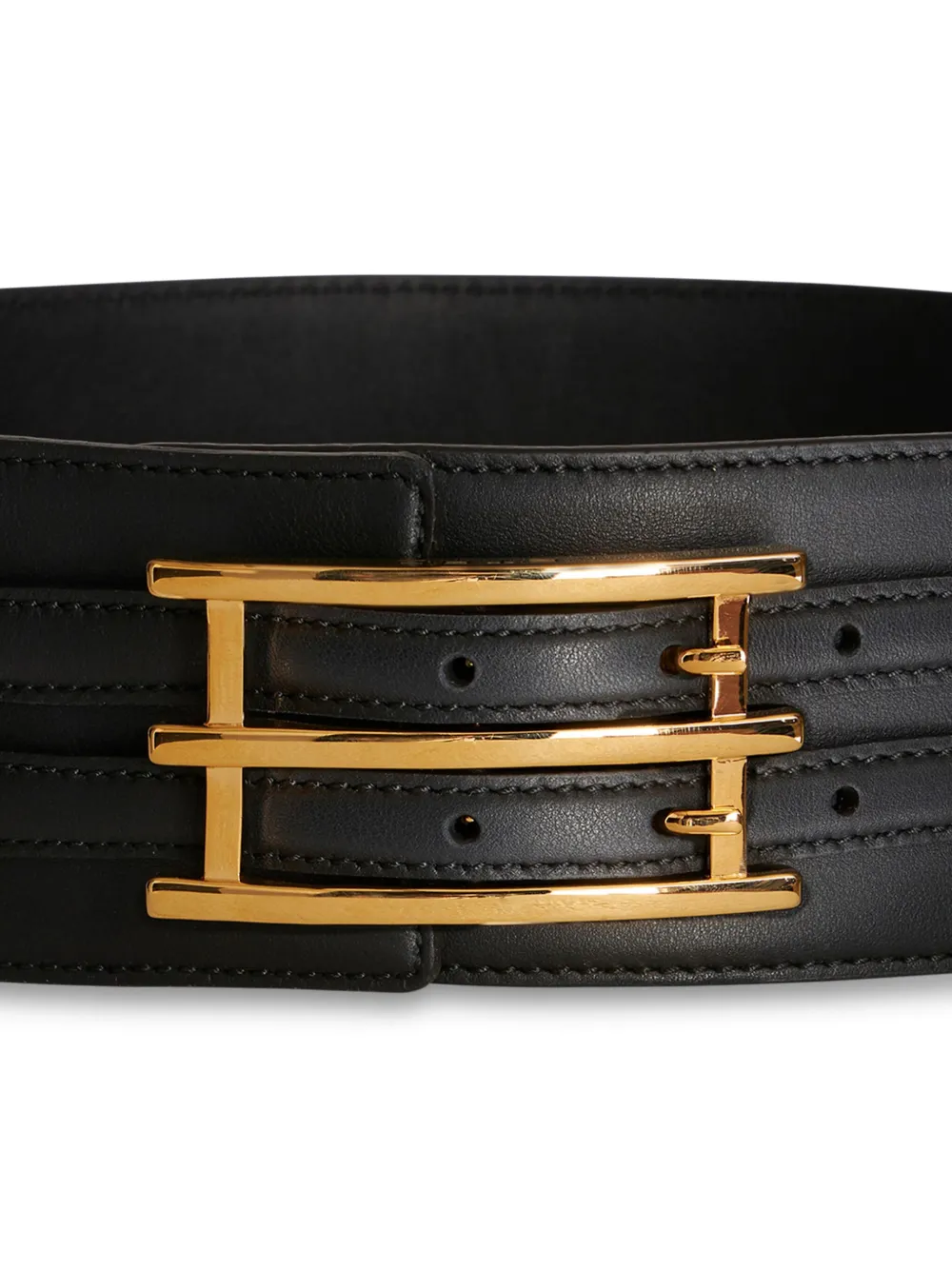 Строчка в тон, золотистая фурнитура, застежка на пряжке, прорезанные отверстия и регулируемый дизайн.