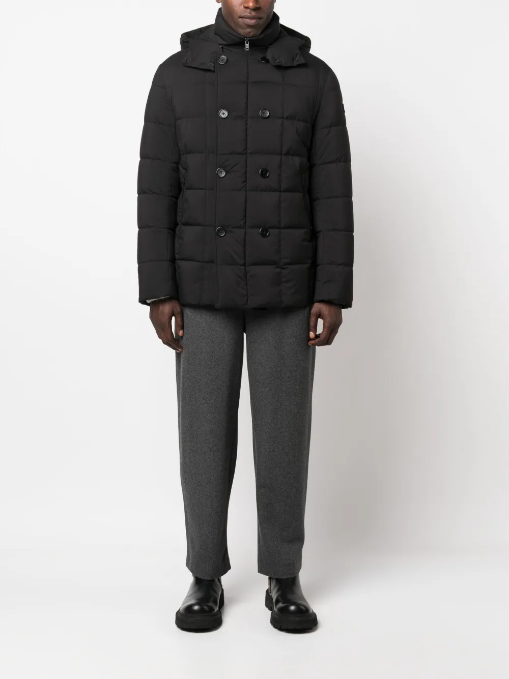 Пуховик на молнии со съемным капюшоном Fay, черный
