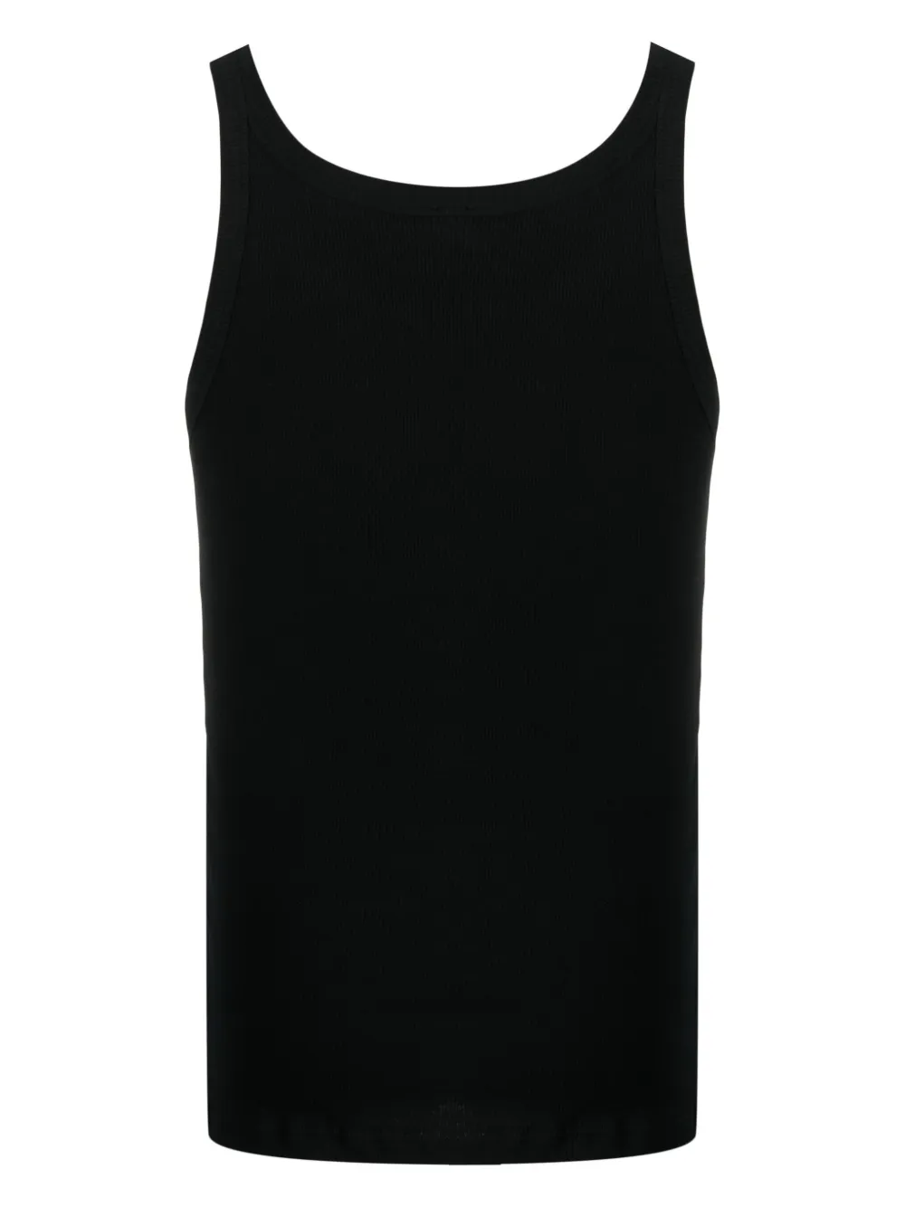 Черный, хлопок, трикотаж в рубчик, круглый вырез, без рукавов и прямой подол.