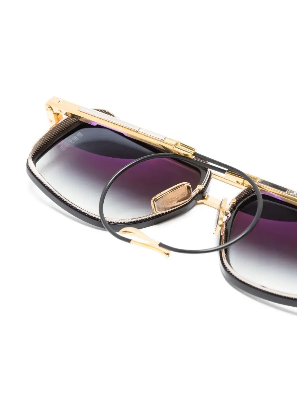 Черный, золотистый, титан, покрытие из 22-каратного золота, оправа «пилот», носоупоры, металлическая верхняя планка, градиентные линзы, линзы с защитой от ультрафиолета, прямые дужки и дужки с закругленными концами. В комплект входит защитный чехол для очков.